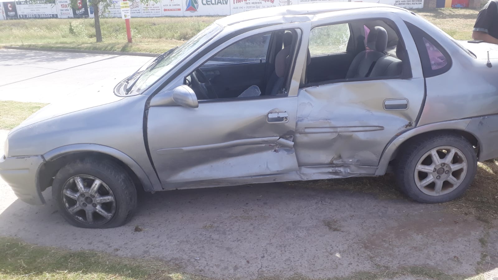 El hecho sucedió en la intersección de las avenidas Libertad y Aníbal Ponce entre un Chevrolet Meriva y un Corsa, el cual terminó arriba de la rambla. Cabe destacar que el último modelo mencionado fue quien sufrió mayores daños ya que fue incrustado por el Meriva cuando éste ingresó a la rotonda a gran velocidad.