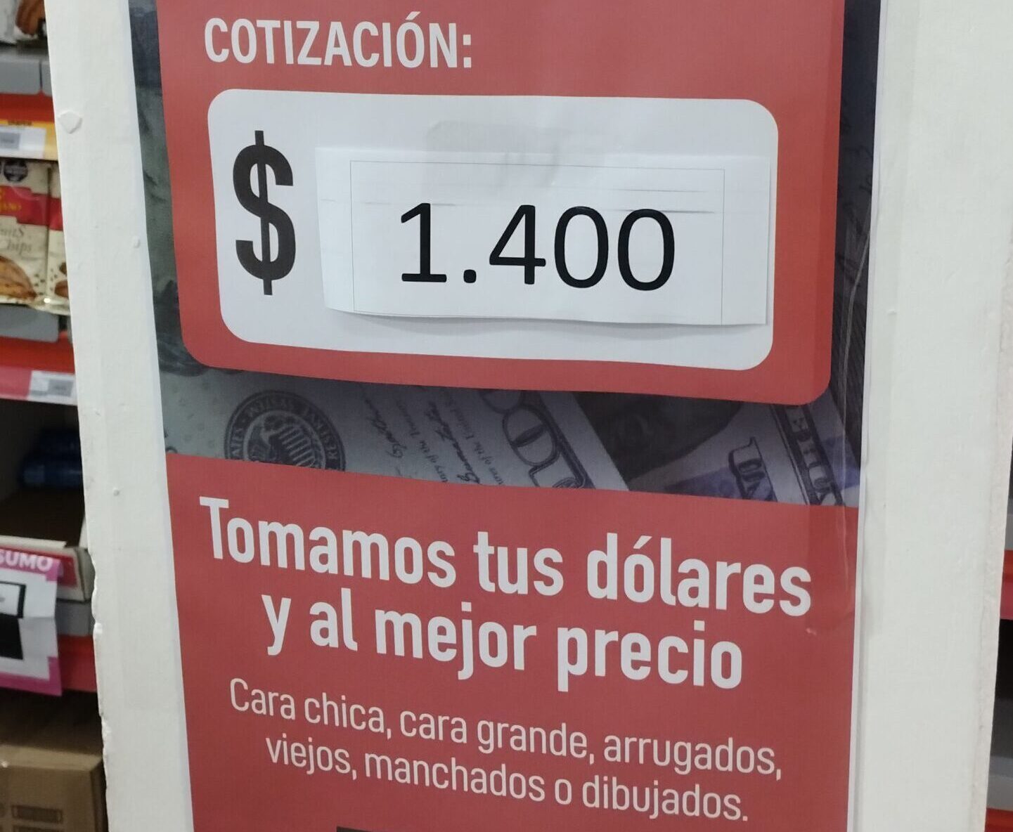 En la firma marplatense, la posibilidad aplica a compras mínimas por el 70% del valor de la moneda mientras que en el establecimiento mayorista se indicó que el monto de la compra debe ser por el total del valor del billete («cara chica, cara grande, arrugados, viejos, manchados y dibujados», advirtieron) debido a que no se habilitó la opción a brindar el vuelto.