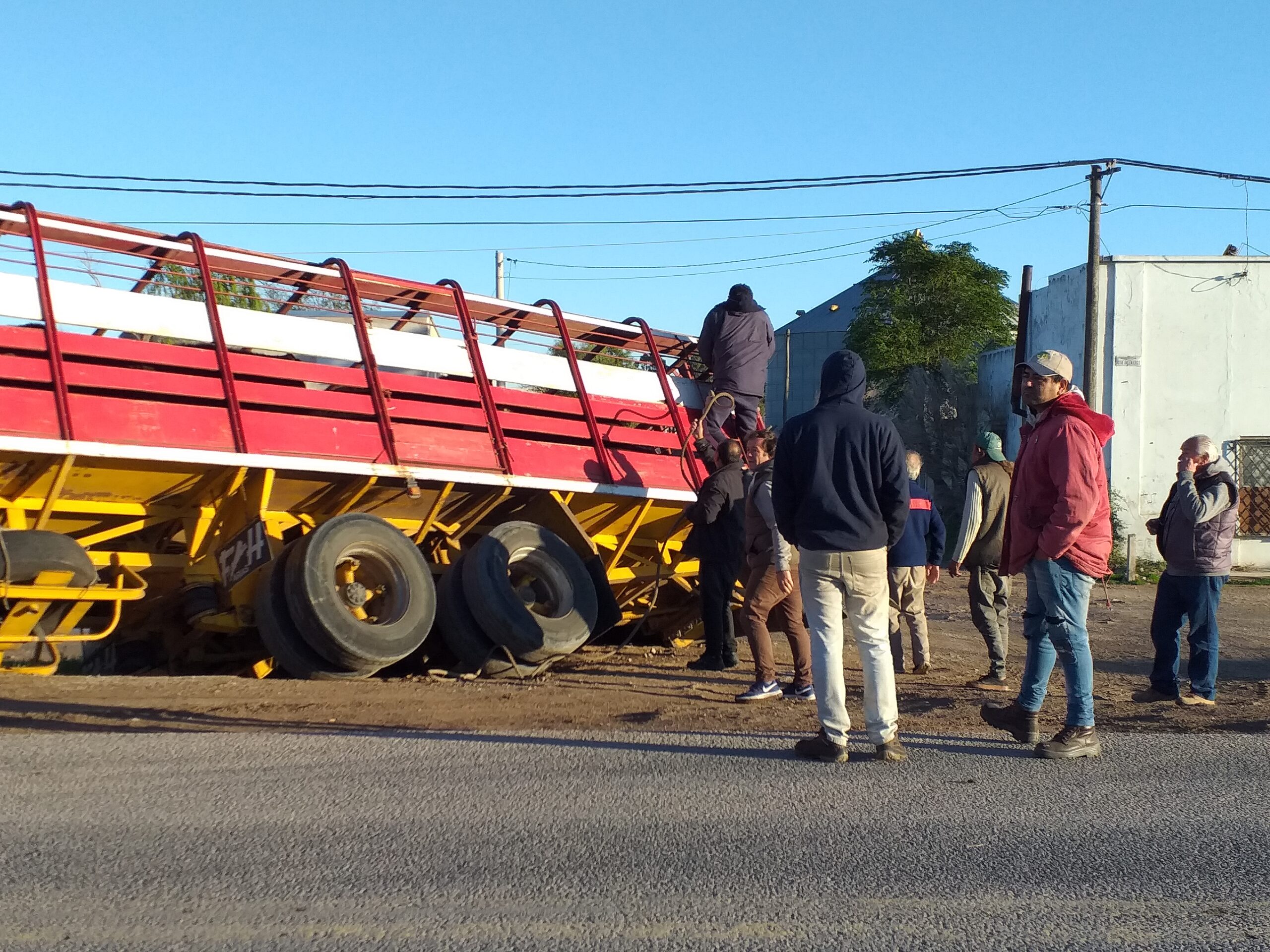 La unidad, de una empresa transportista de Rauch, intentó subir a la autovía con su carga completa pero no advirtió la presencia del socavón y quedó atrapado sobre la ruta.