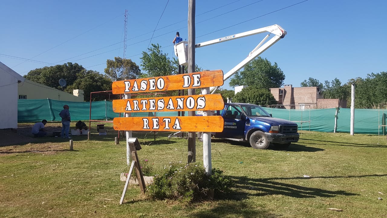 El área de Electrotécnica instaló la nueva iluminación del Paseo de los Artesanos en Reta.
