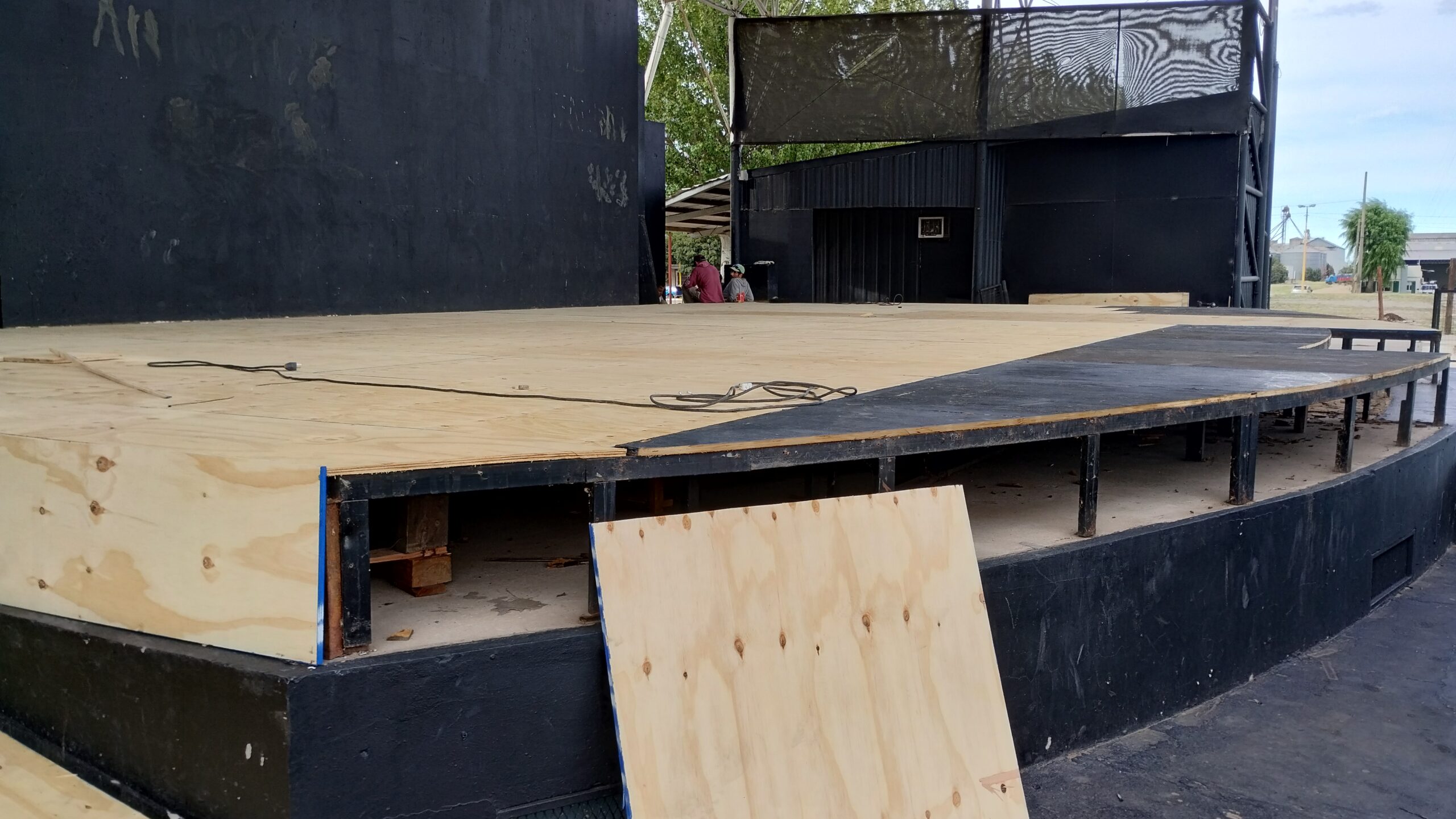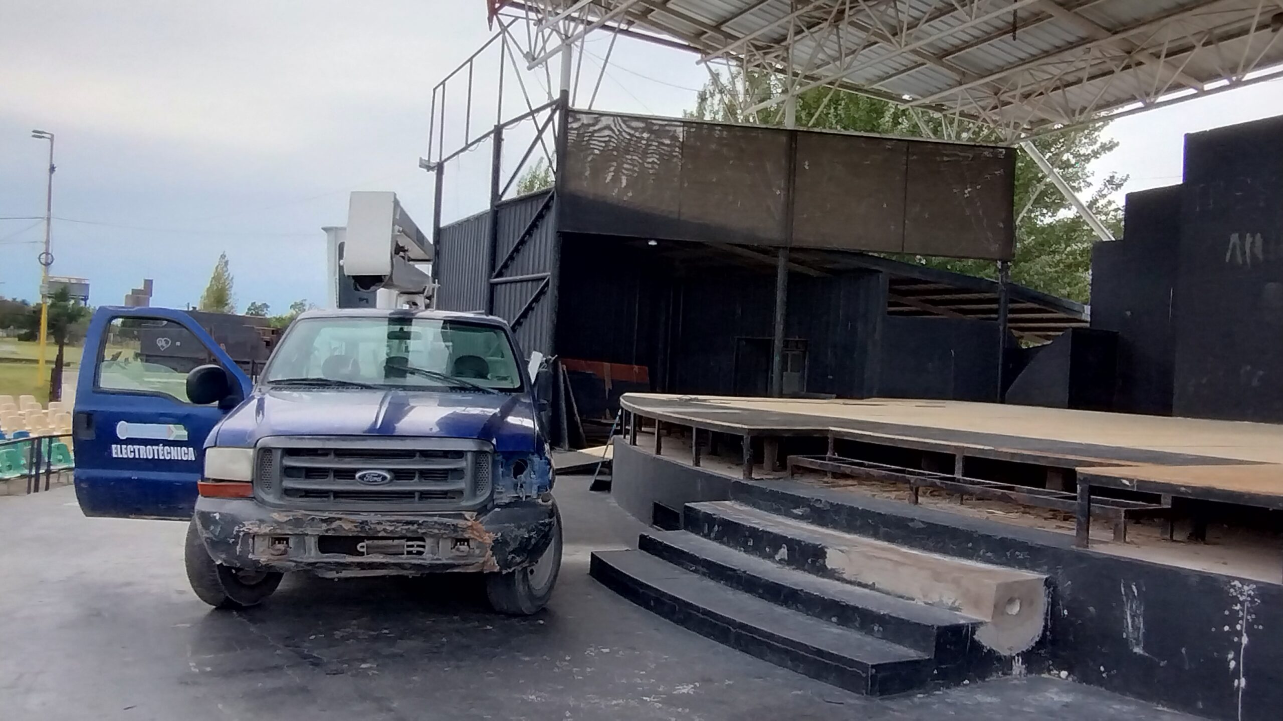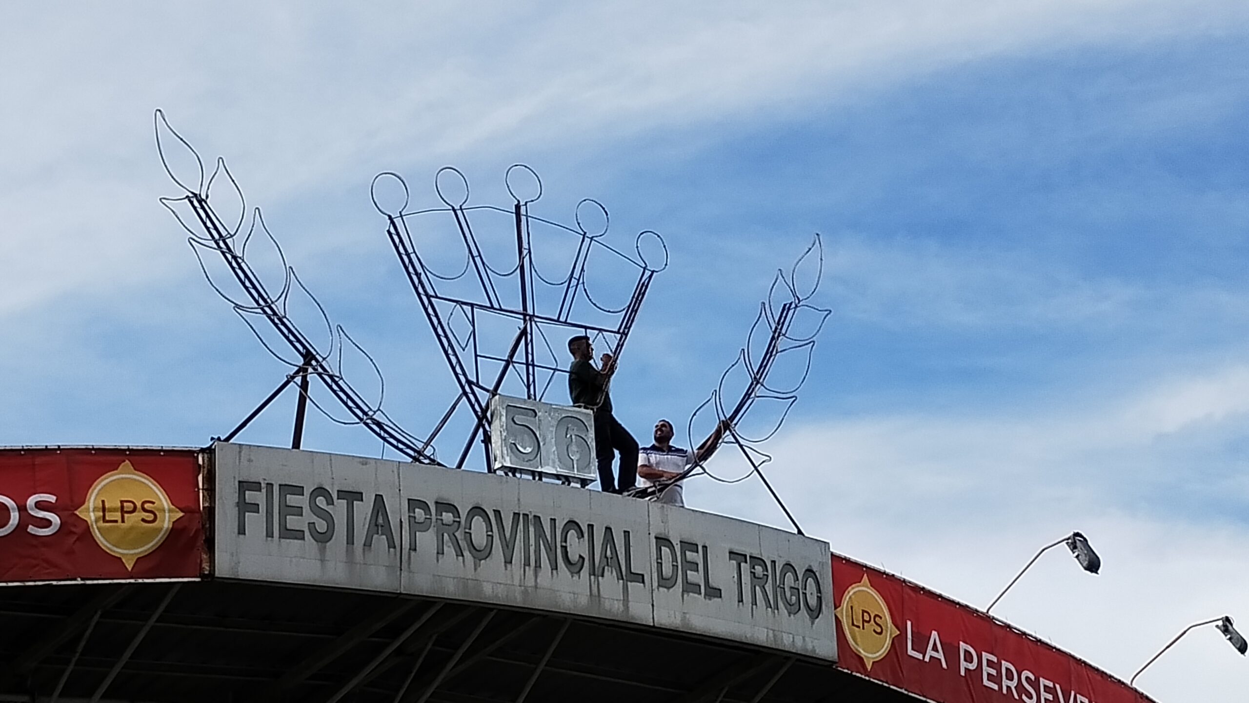 Esta mañana se iniciaron las obras de armado del Escenario Mayor Juan Pesalaccia, sitio emblemático donde tendrá lugar la edición número 56 de la Fiesta del Trigo que se extenderá del miércoles 5 al domingo 9 de marzo.