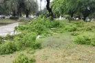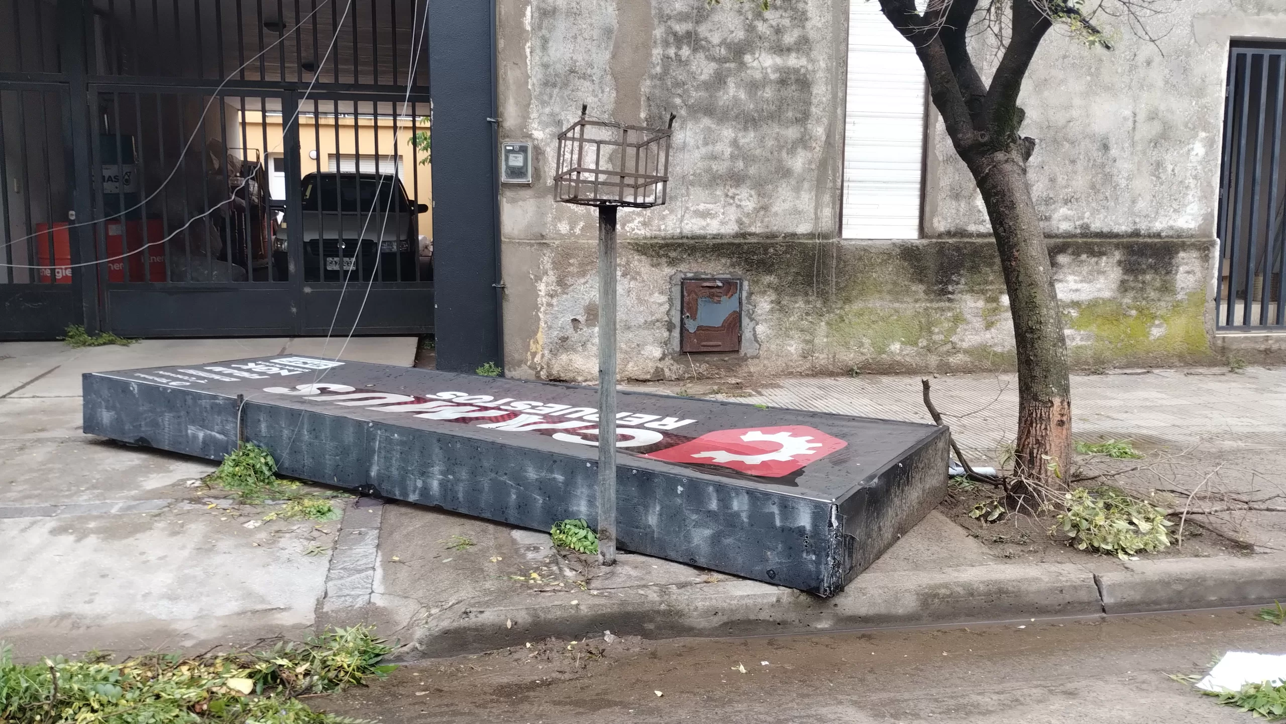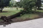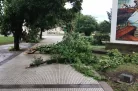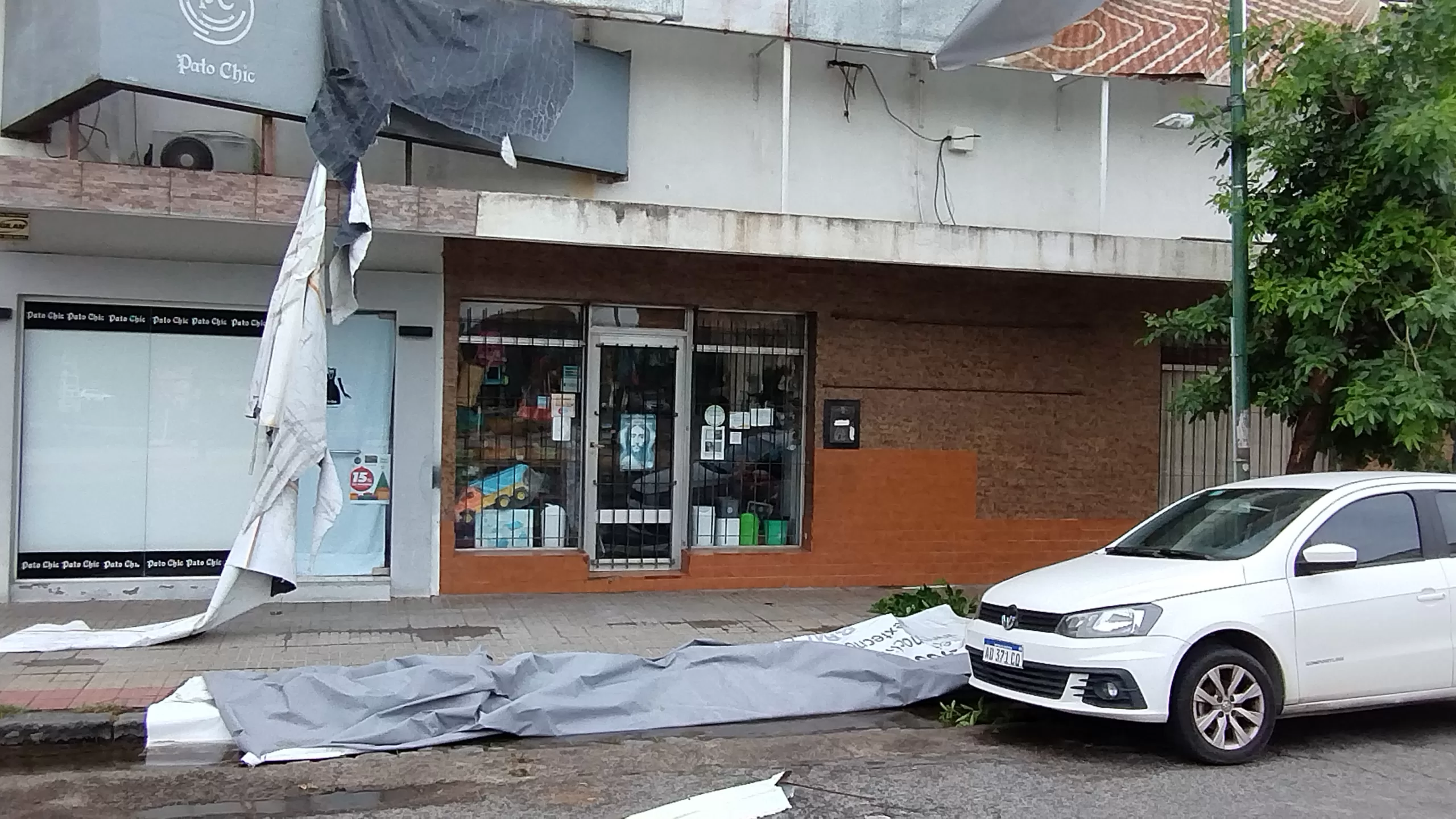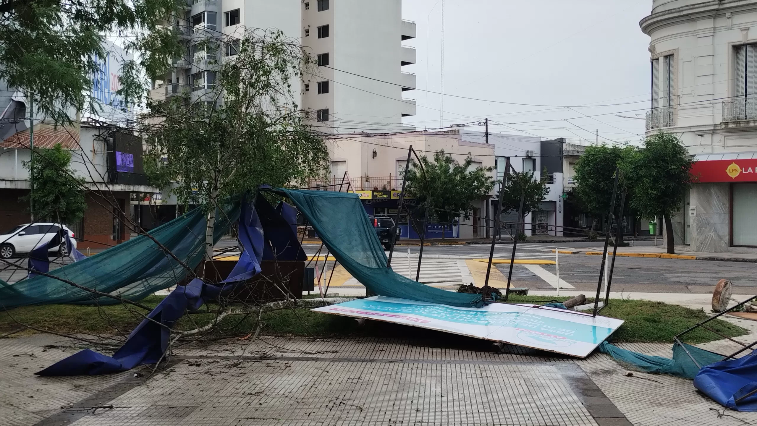 En la céntrica Plaza San Martín voló el puesto de artesanos ubicado en Betolaza y Colón mientras que los enormes gajos cayeron sobre columnas de alumbrado y juegos en ésta, la Italia, la Francia y la del Árbol.
