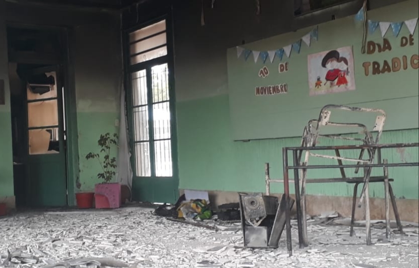 Por causas a establecer, un foco ígneo destruyó gran parte de las aulas y la preceptoría además de acabar con las instalaciones eléctrica, mampostería y elementos de uso diario en la institución. Por otra parte, los archivos en papel y digitales de lugar fueron devorados por las llamas además de suspenderse indefinidamente las clases.