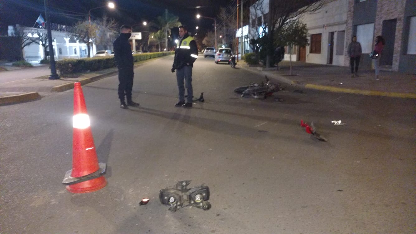 En esa intersección, un Chevrolet Corsa afectado al servicio de remisse intentó pasar desde Paso hacia Alvear sin advertir que circulaba una moto de mediana cilindrada desde la avenida en dirección hacia la ruta 228 y la embistió.