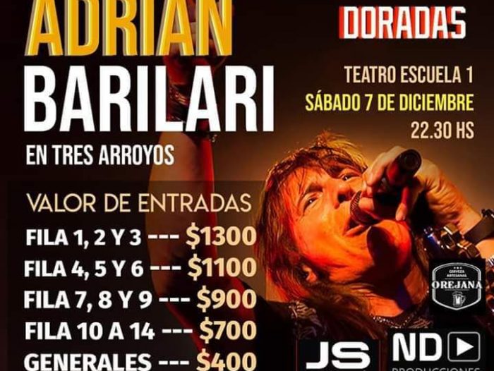 El sábado 7 de diciembre, el líder de Rata Blanca Adrián Barilari presentará Canciones Doradas en el Teatro de la Escuela 1 en Sarmiento 50.