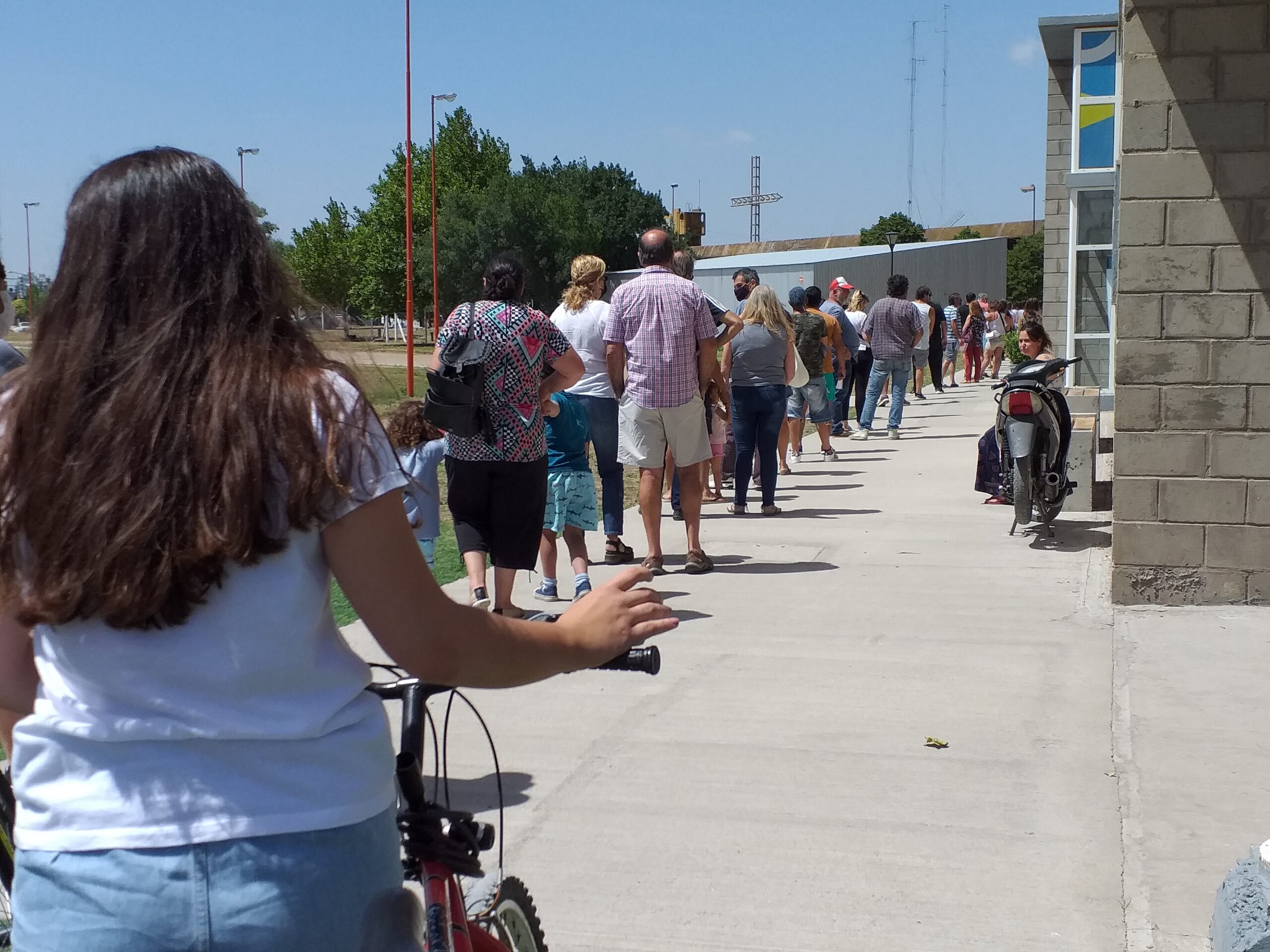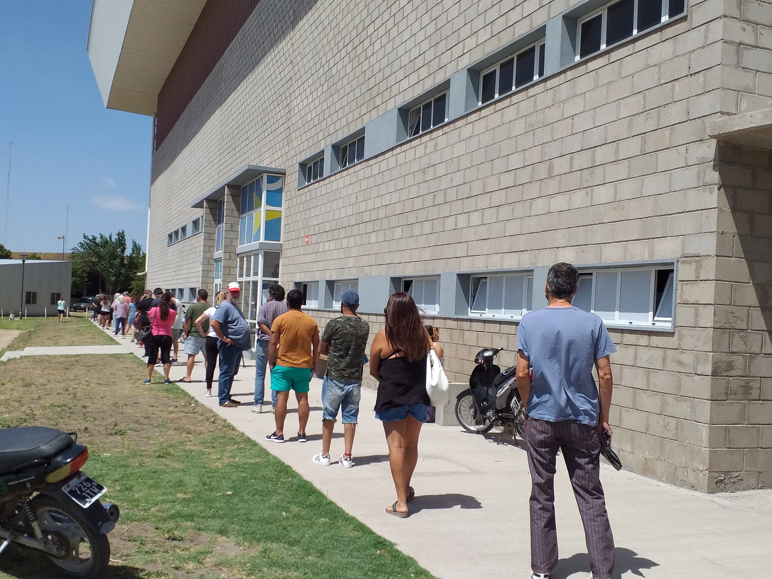 Desde mediados de mañana y durante la tarde, la fila se extendió desde el ingreso ubicado sobre la Terminal de ómnibus hasta el acceso ubicado sobre calle La Rioja y parte del estacionamiento.