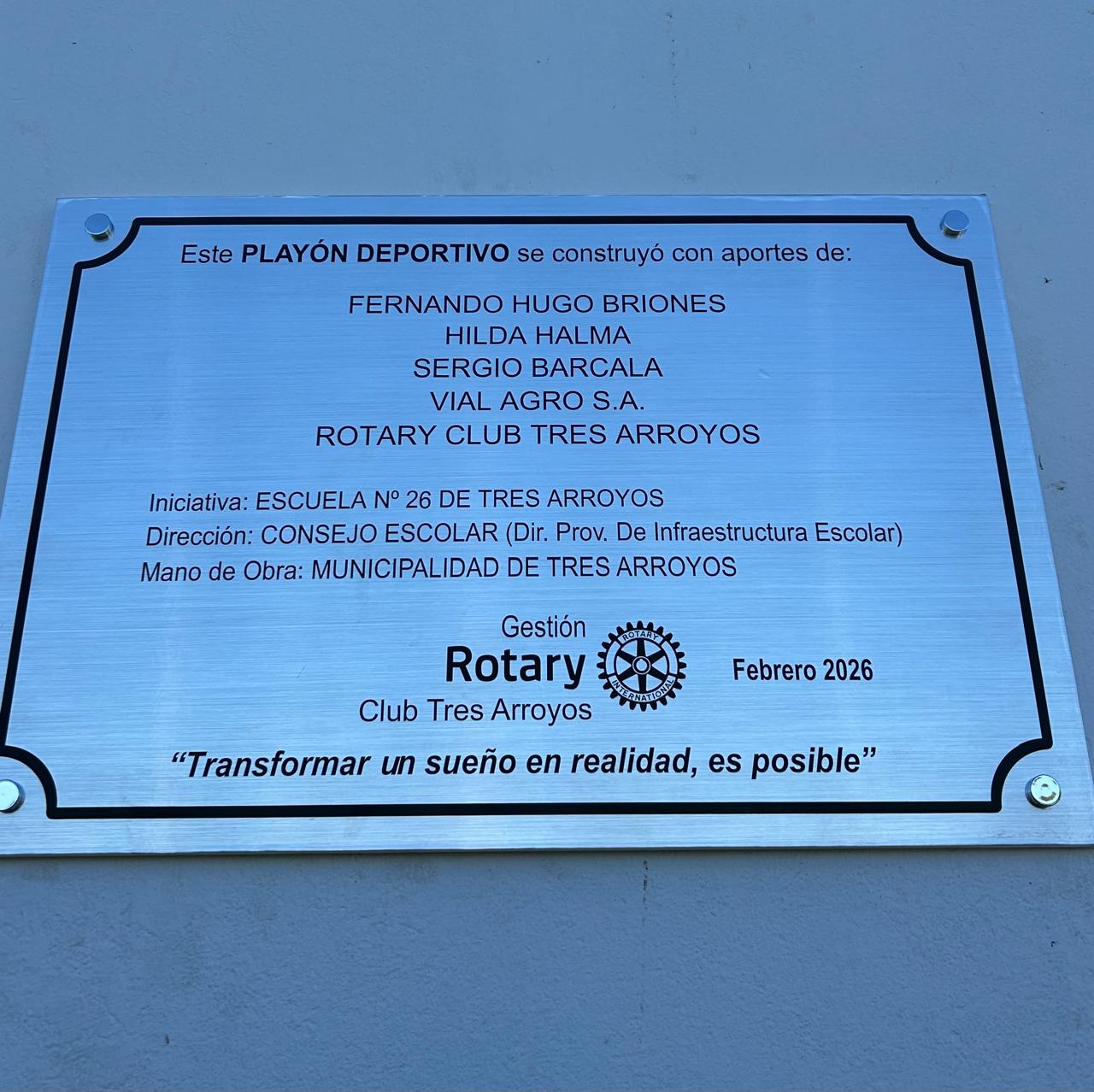 Con la presencia de autoridades municipales, directivos escolares, alumnos y representantes de la comunidad, el Rotary Club de Tres Arroyos dejó oficialmente inaugurado el nuevo playón deportivo de la Escuela Primaria N° 26. La obra, que transforma un espacio baldío en un centro de recreación y salud para los jóvenes, es el resultado de un modelo de gestión que la entidad defiende como su razón de ser: la cooperación mutua.