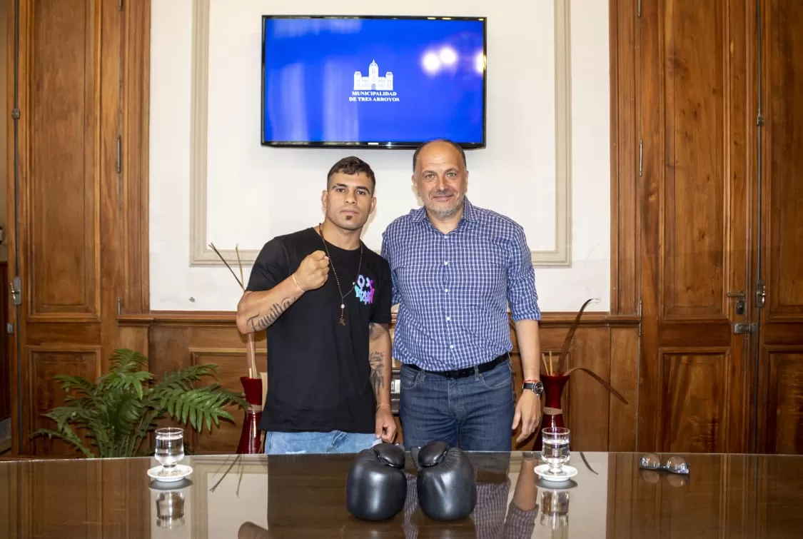 «Vamos a brindar una buena exhibición y me brindo para hacer esto que beneficiará a quienes perdieron el techo por el temporal», remarcó Lemos junto al jefe comunal, quien agradeció la predisposición y subayó la importancia del evento en el que «terminaremos el año viendo al boxeador de nuestro pueblo, en nuestro Poli y a beneficio de nuestros vecinos».