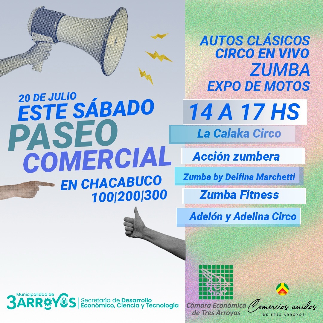 Este sábado, de 14.00 hs a 17.00 hs la calle Chacabuco será protagonista del primer Paseo Comercial de Invierno a cielo abierto, una propuesta que surge del trabajo en conjunto de la Dirección de Industria, Comercio y Emprendedurismo, Comerciantes Unidos de Tres Arroyos y la Cámara Económica.