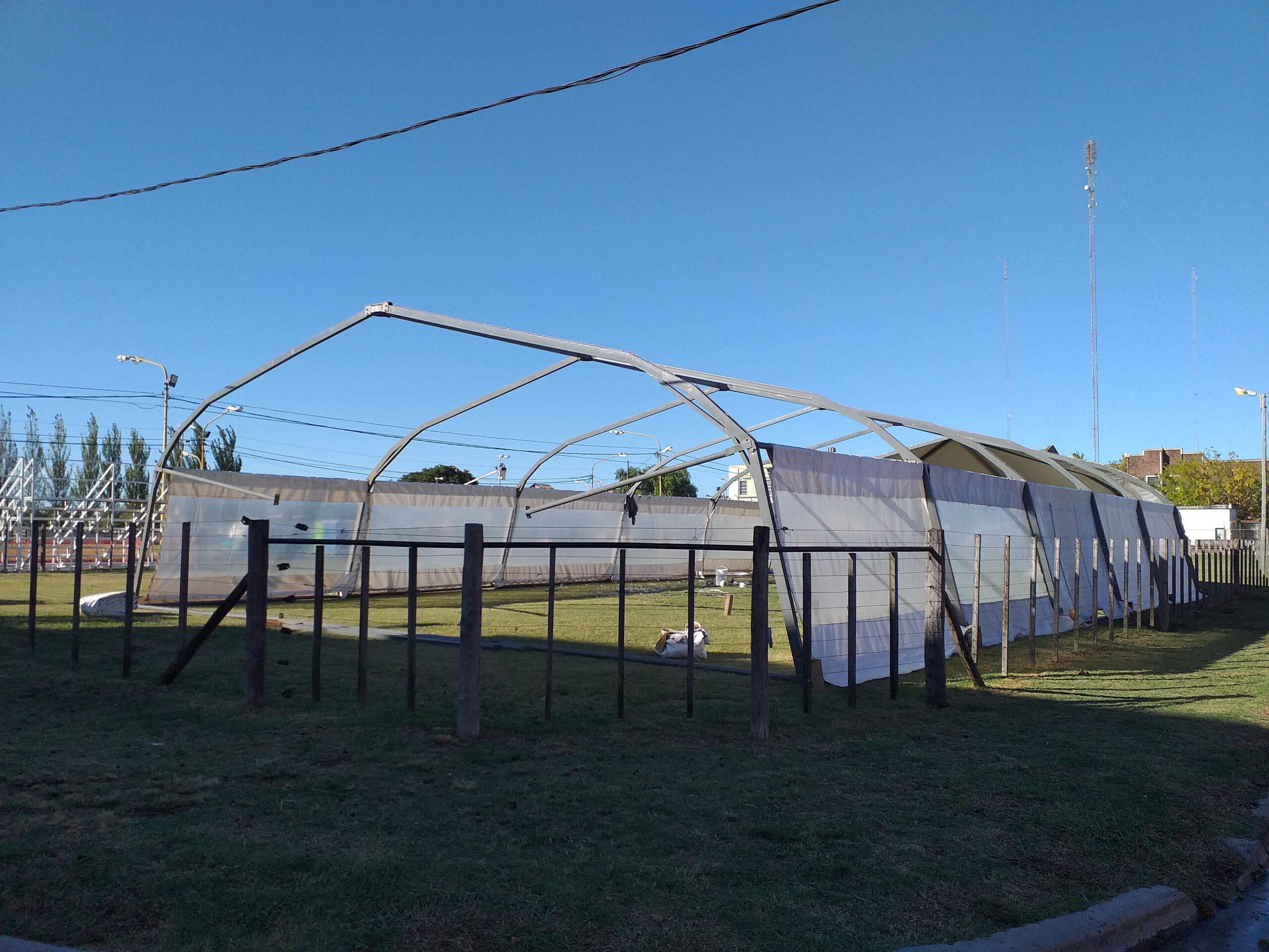 Luego del insistente aguacero de esta madrugada, se reanudaron las obras de reacondicionamiento en el predio de la Fiesta Provincial del Trigo para la edición 53.