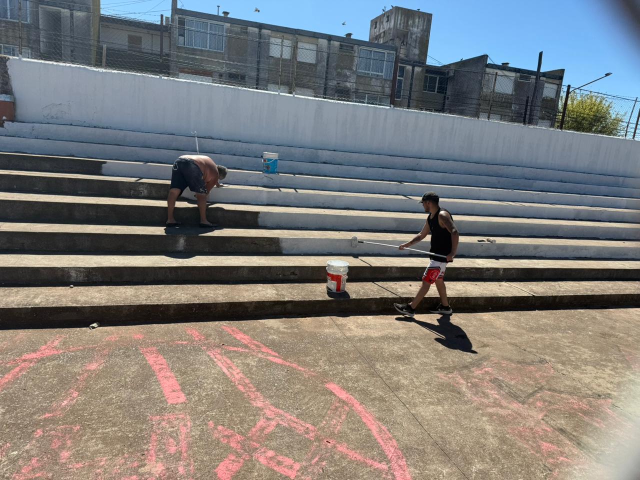 Paralelamente, y con la colaboración de hinchas del club, se están llevando adelante trabajos de pintura en tribunas, plateas y cabinas, con el objetivo de mejorar las instalaciones.