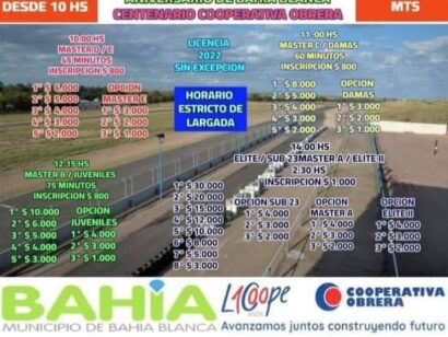 En la prueba principal de Elite, que tuvo en el podio a Claudio Martínez de Necochea, Juan Barone de Punta Alta y Pablo Bien de Bahía Blanca, participaron Agustín Aristemuño y Braian Flores.