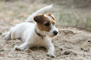 - Higiene: en cuanto al resto de cuidados, el jack russell terrier no requiere nada más específico. Tendremos que bañarlo una vez al mes o cuando consideremos que está sucio, aprovechando para limpiar sus orejas siguiendo las instrucciones del veterinario. Por otro lado, tendremos que cepillarlo dos veces a la semana e incrementar los cepillados en época de muda, con un cepillo tipo carda suave para pelo corto y humedeciendo antes todo su pelaje para evitar romper el pelo. Así mismo, mantendremos en perfectas condiciones sus uñas y vaciaremos de forma regular sus glándulas anales.