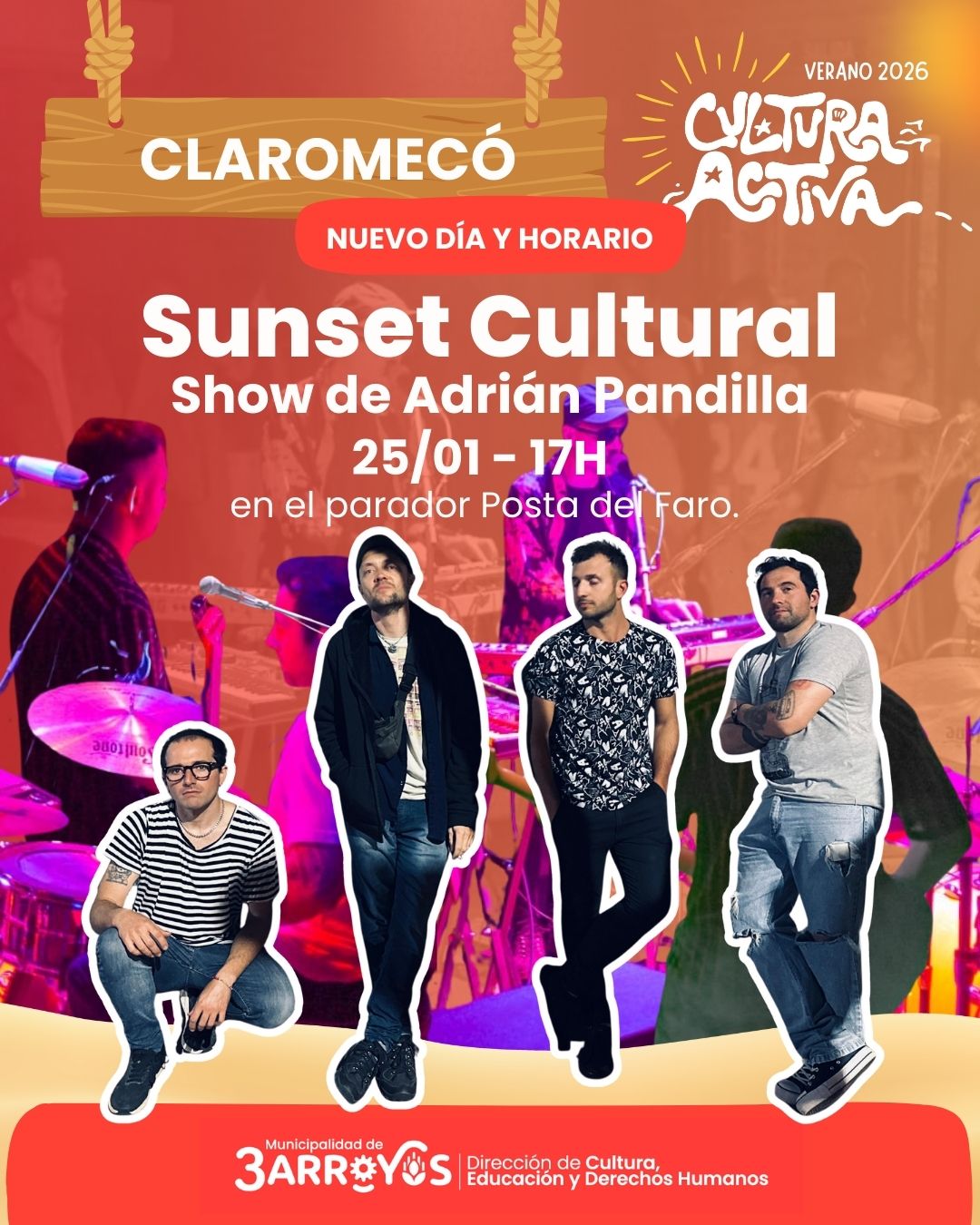 En el marco del programa Cultura Activa – Verano 2026, la Dirección de Cultura, Educación y Derechos Humanos anunció la realización de una nueva jornada artística diseñada para disfrutar del paisaje costero. Se trata del «Sunset Cultural», una propuesta que busca combinar la música en vivo con el entorno natural de la playa durante el atardecer.