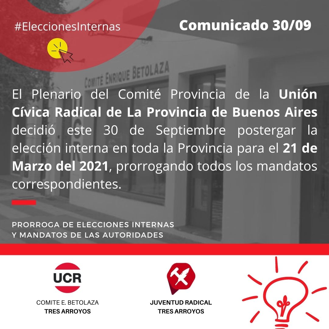 La Unión Cívica Radical postergó los comicios internos a nivel provincial y prorrogó los mandatos para marzo del año venidero.