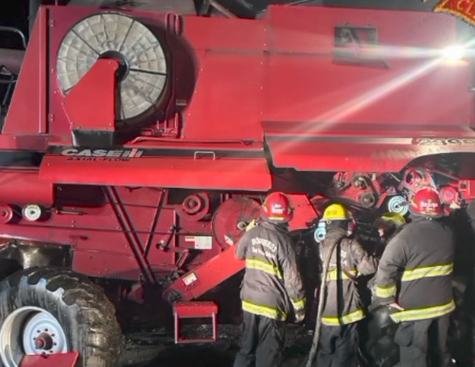 Bomberos de Claromecó y Bellocq sofocaron el incendio de una cosechadora en un campo en cercanías de Lin Calel.