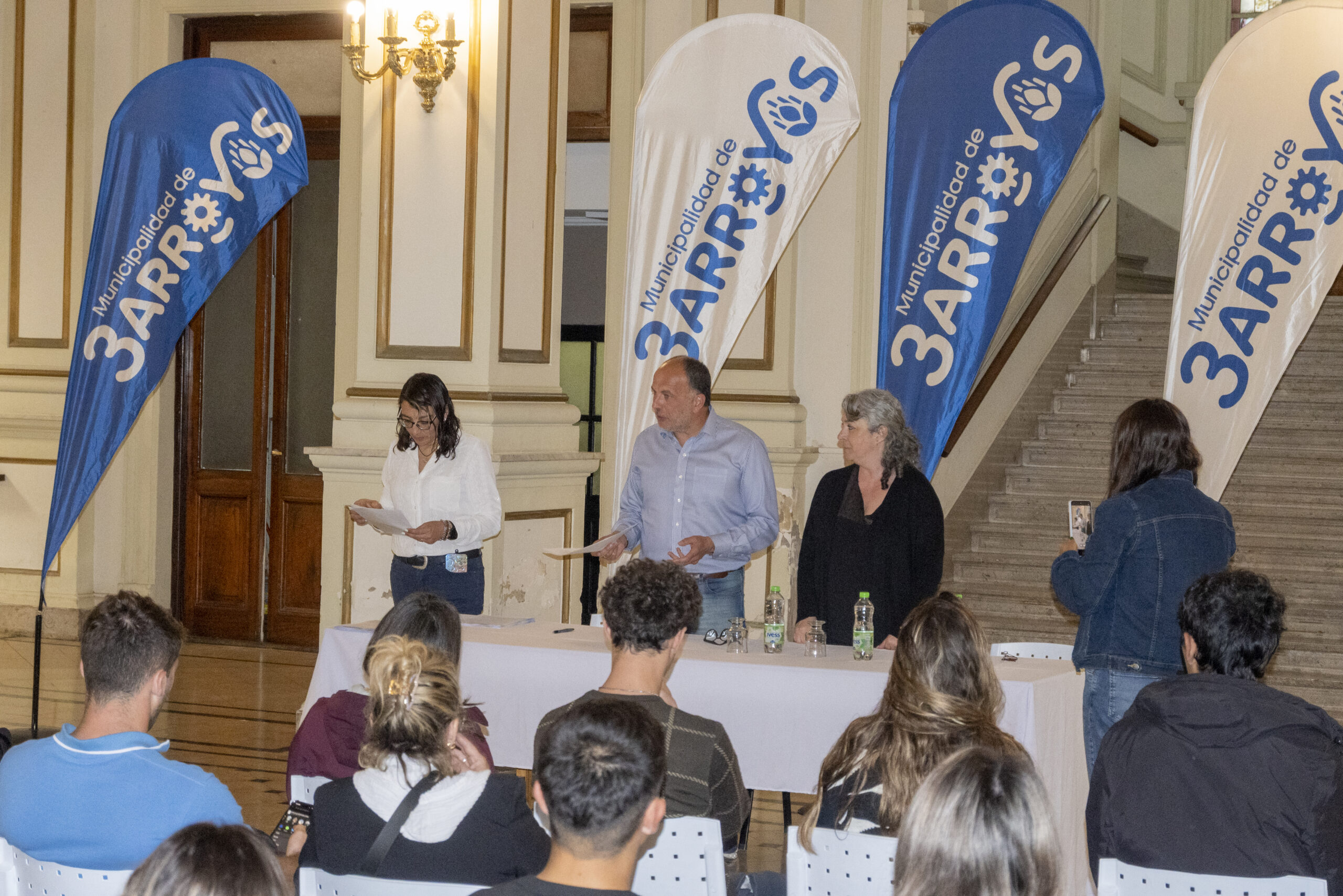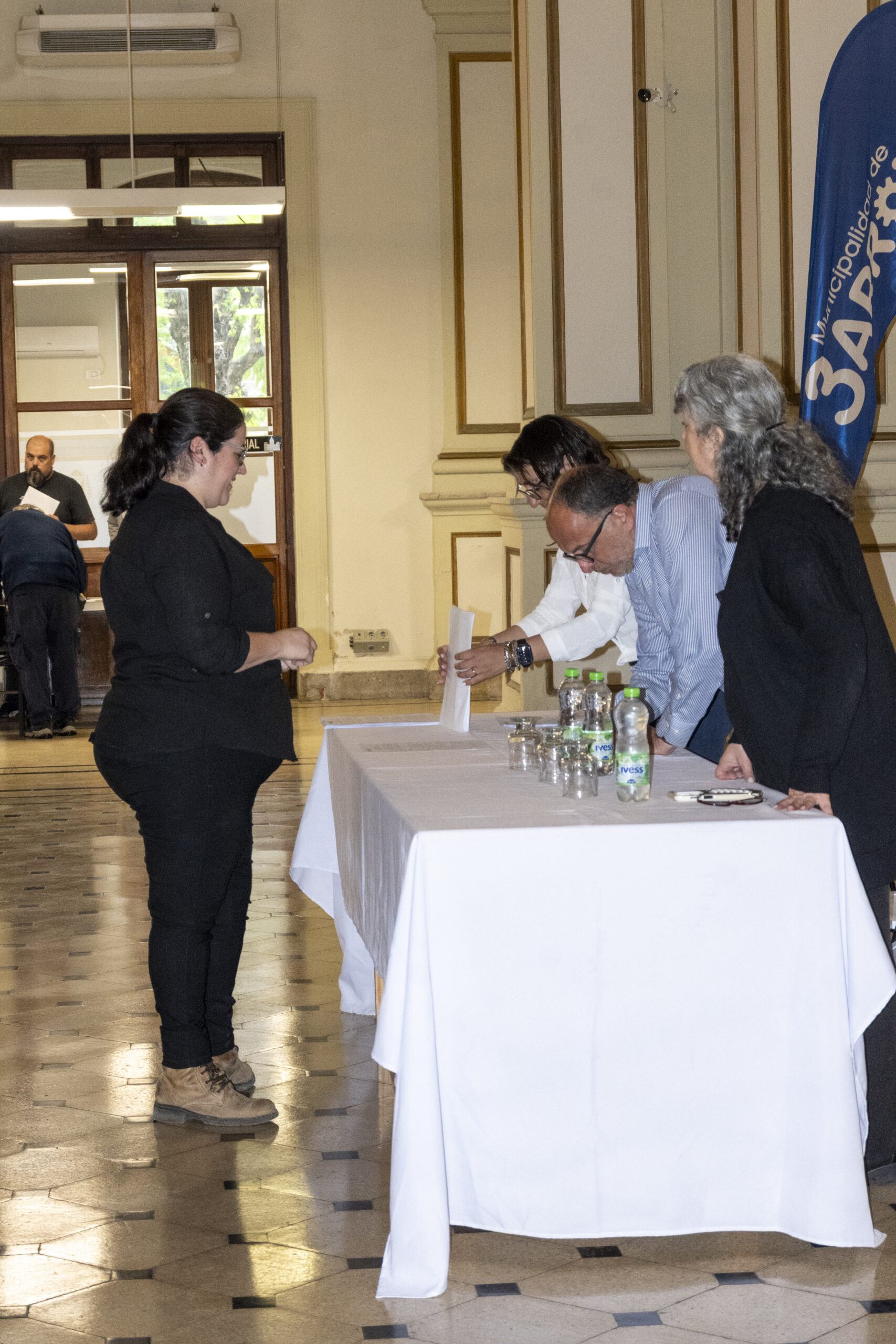 El acto contó con la presencia del intendente Pablo Garate, la secretaria de Planeamiento Urbano, Paola Salerno, y Luján Landeyro, en representación del área de Tierras.