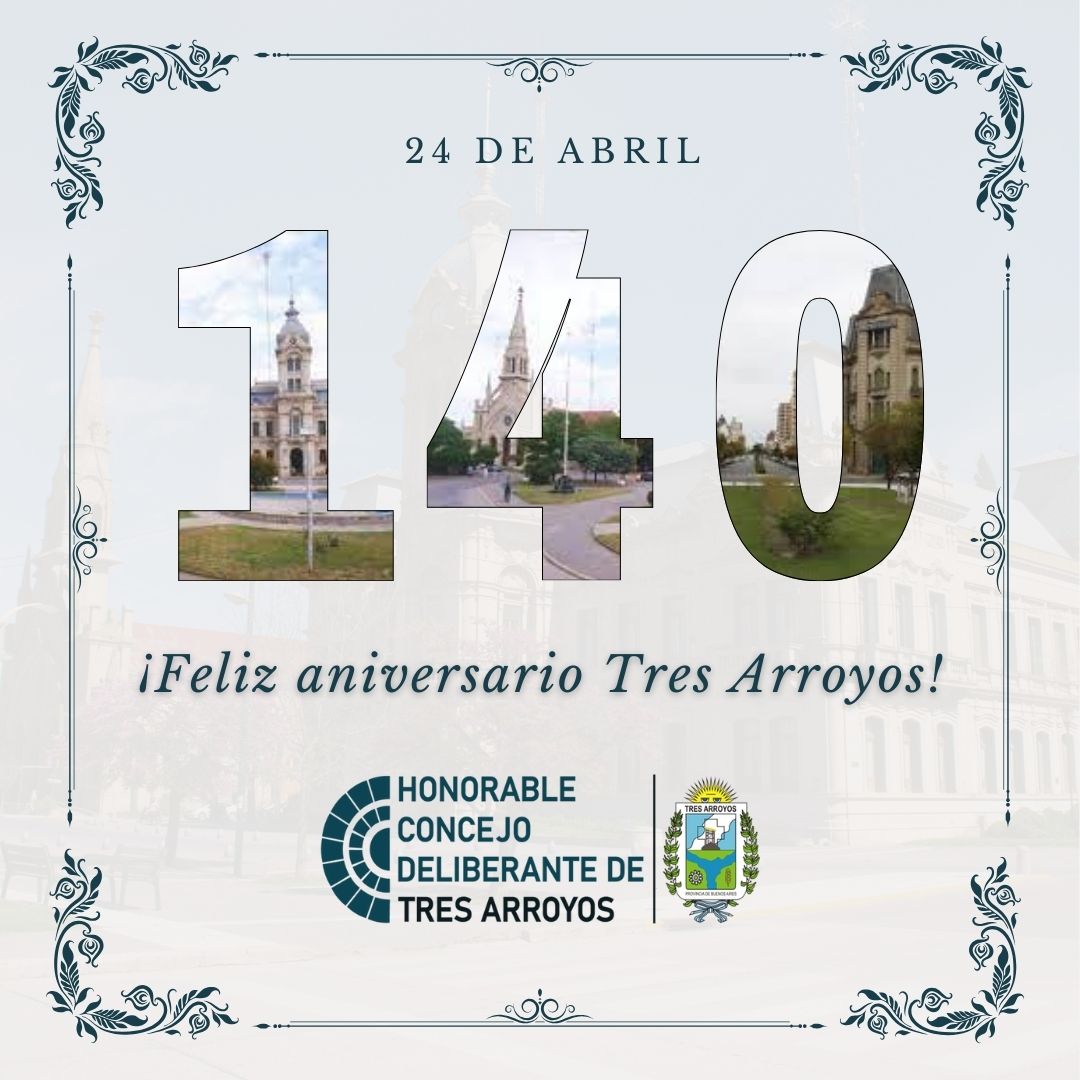 «En este aniversario tan significativo, extendemos nuestros más sinceros deseos de felicidad a todos los residentes de Tres Arroyos, así como nuestro reconocimiento por su compromiso inquebrantable con el progreso y bienestar común. Hoy es una oportunidad para reflexionar sobre nuestro legado y comprometernos a seguir construyendo un futuro aún más prometedor», sumó el cuerpo deliberativo tras agradecer «a todos los habitantes por su dedicación, esfuerzo y amor por esta tierra. Juntos hemos logrado grandes cosas, y juntos seguiremos trabajando para hacer de Tres Arroyos un lugar maravilloso».