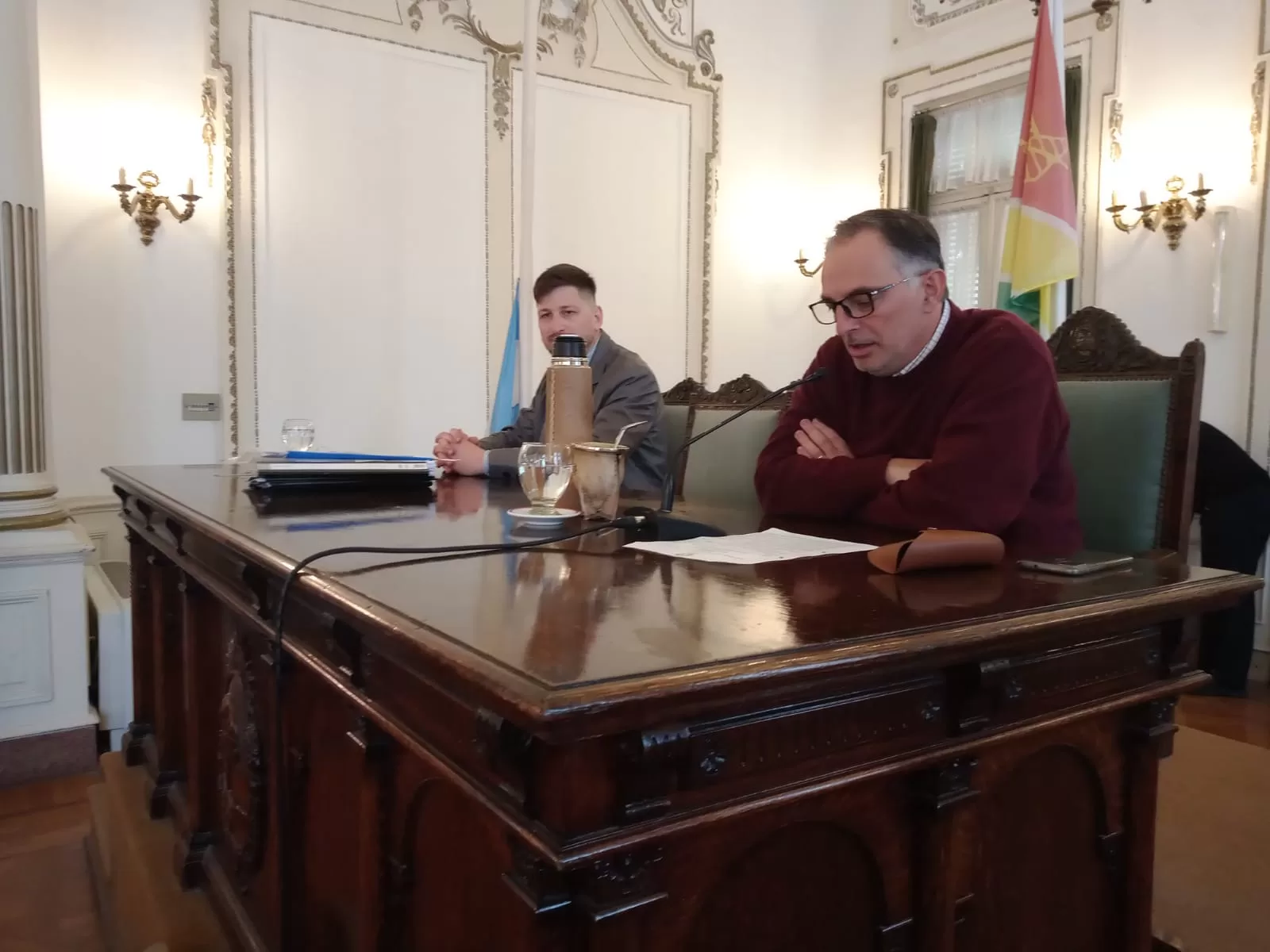 El tema fue gatillado desde la bancada de Juntos, en donde el edil Cristian Ruiz dio a conocer un supuesto «apriete» de parte del delegado de Reta Lucas Oviedo a un agente; posteriormente, los peronistas Julio Federico y Martín Garate extendieron esa hipotética presión laboral al resto de las áreas. El tema trascendió la sesión y continuó por los pasillos.