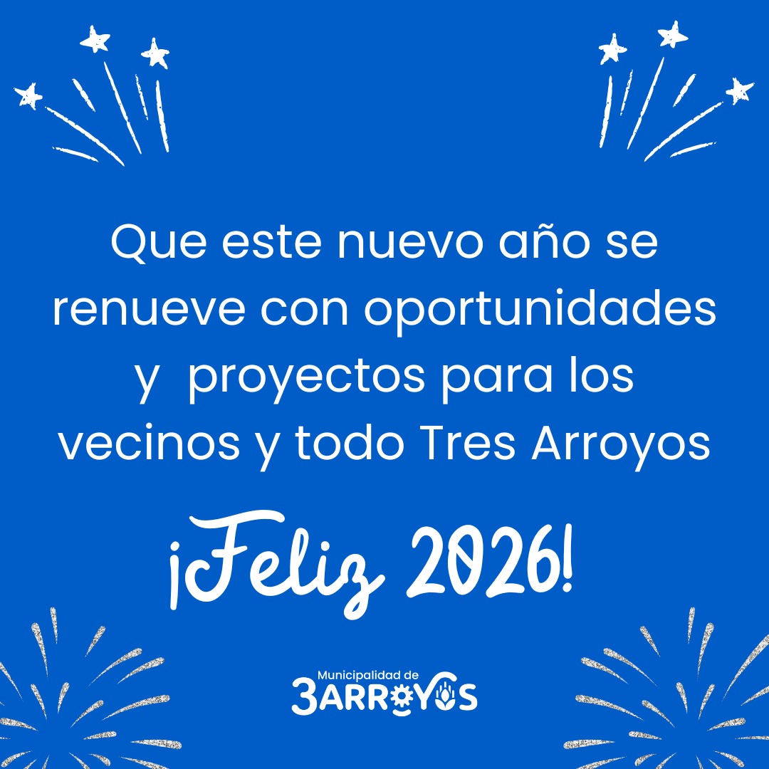 En el inicio de este 2026, la Municipalidad de Tres Arroyos emitió un cálido saludo dirigido a todos los habitantes del distrito. En su mensaje, el gobierno local expresó su agradecimiento por el esfuerzo, la paciencia y el compromiso demostrados por la ciudadanía a lo largo de un año que presentó dificultades para numerosas familias de la región.