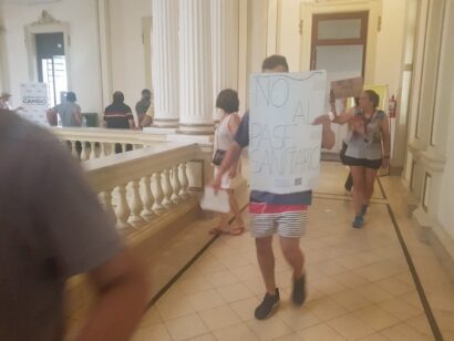 Entre las pancartas exhibidas, que proclamaban la libertad de circular, llamó la atención uno en particular que conminaba a los concejales a «no convertirse en genocidas».