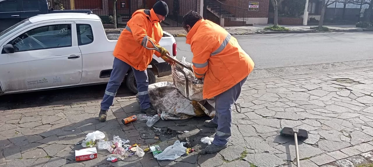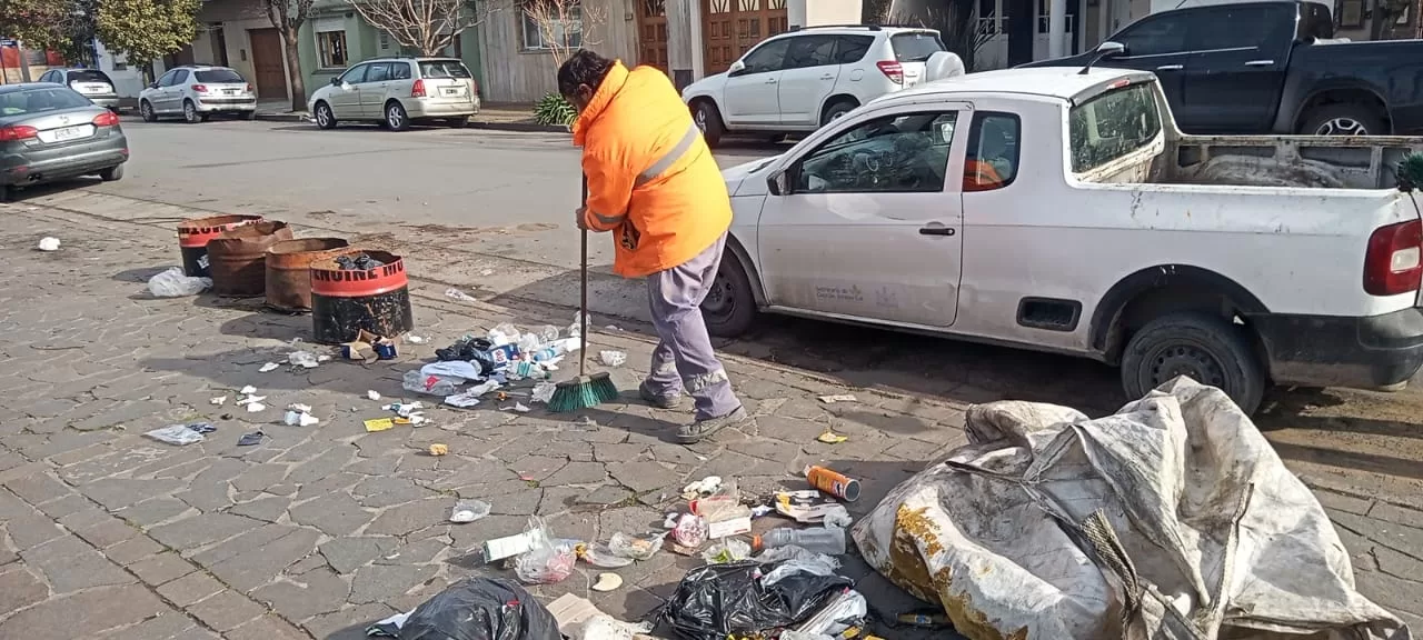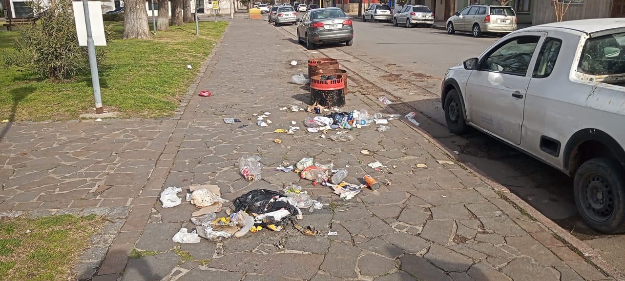 Una cuadrilla de Higiene Urbana realizó trabajos de limpieza en la Plaza Italia como consecuencia del uso de los cestos para el depósito de basura domiciliaria.