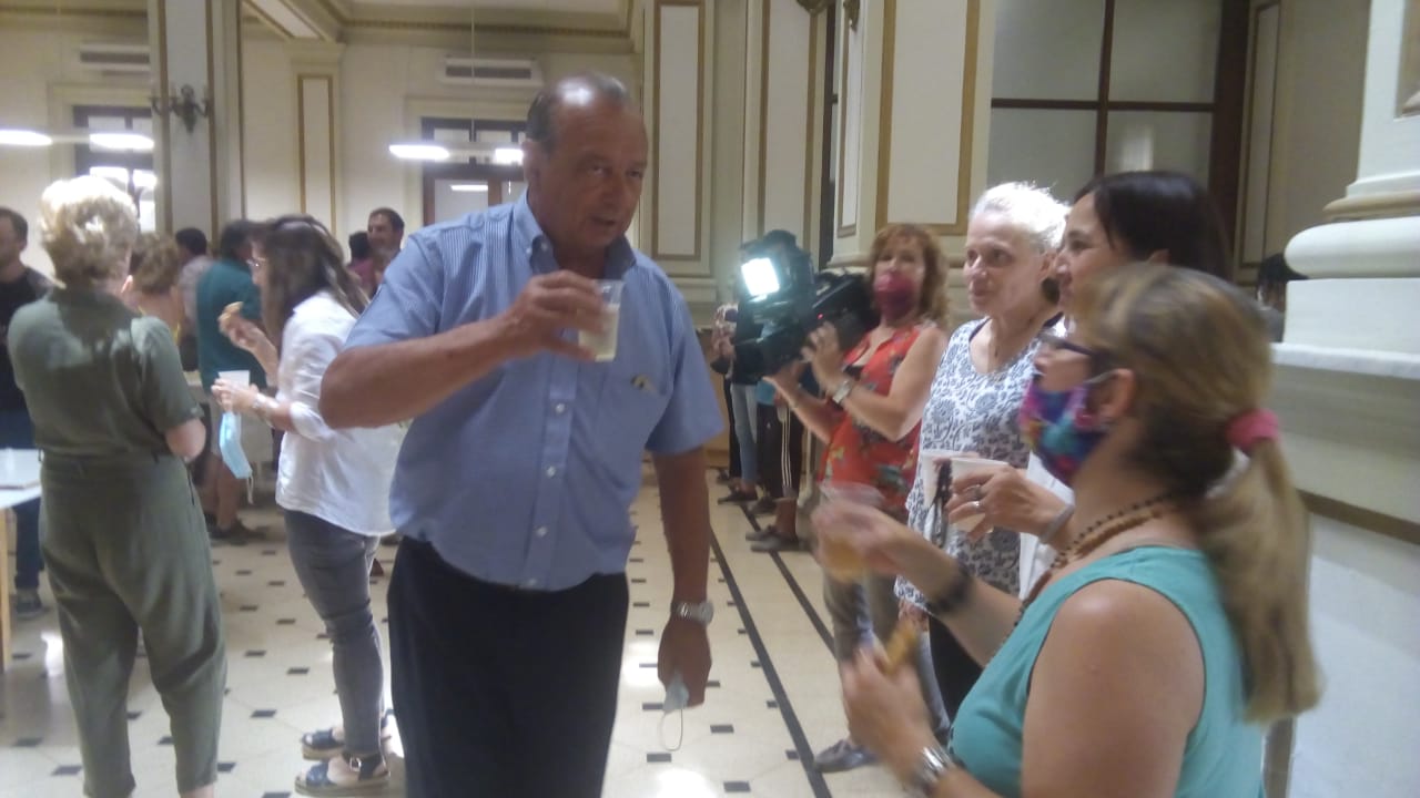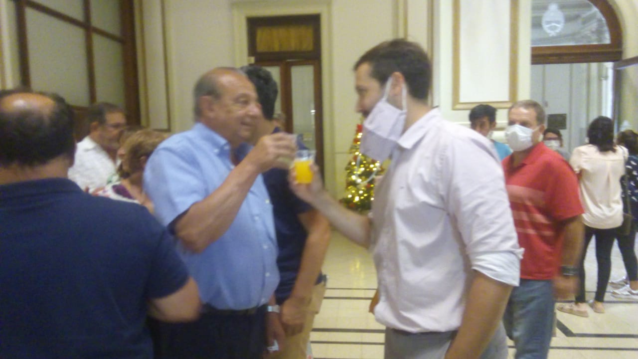 En el tradicional brindis de fin de año en la planta baja del Palacio Municipal con trabajadores, concejales y funcionarios, el jefe comunal aludió a la fallida votación por el Presupuesto 2022 y lamentó la escalada de casos de coronavirus.