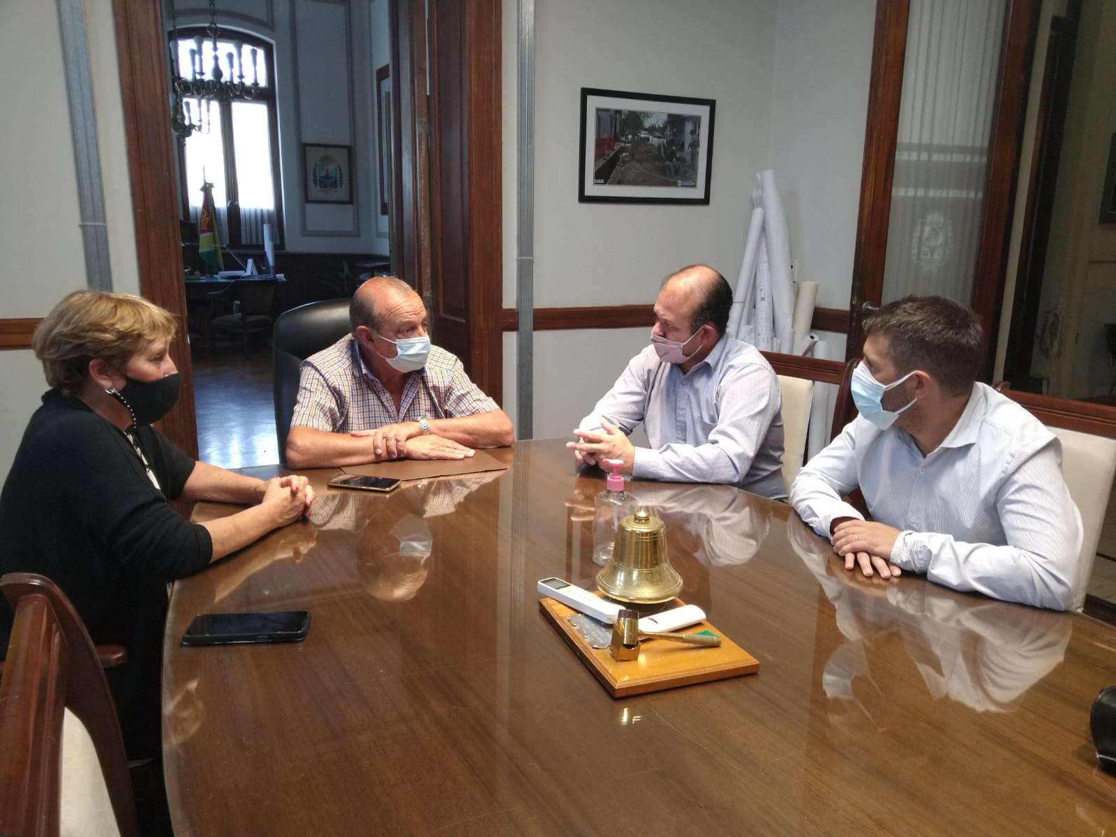 El intendente Carlos Sánchez y la secretaria de Desarrollo Social Claudia Cittadino recibieron a los titulares del PAMI y ANSES, Facundo Elgart y Guillermo Leguizamón respectivamente, referentes del plan de vacunación que se realiza en las instalaciones del Polideportivo.