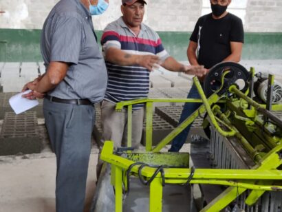 El intendente Carlos Sánchez y la secretaria de Desarrollo Social Claudia Cittadino visitaron la bloquera para el seguimiento de los bloques utilizados en la construcción del SUM del Barrio Ranchos.