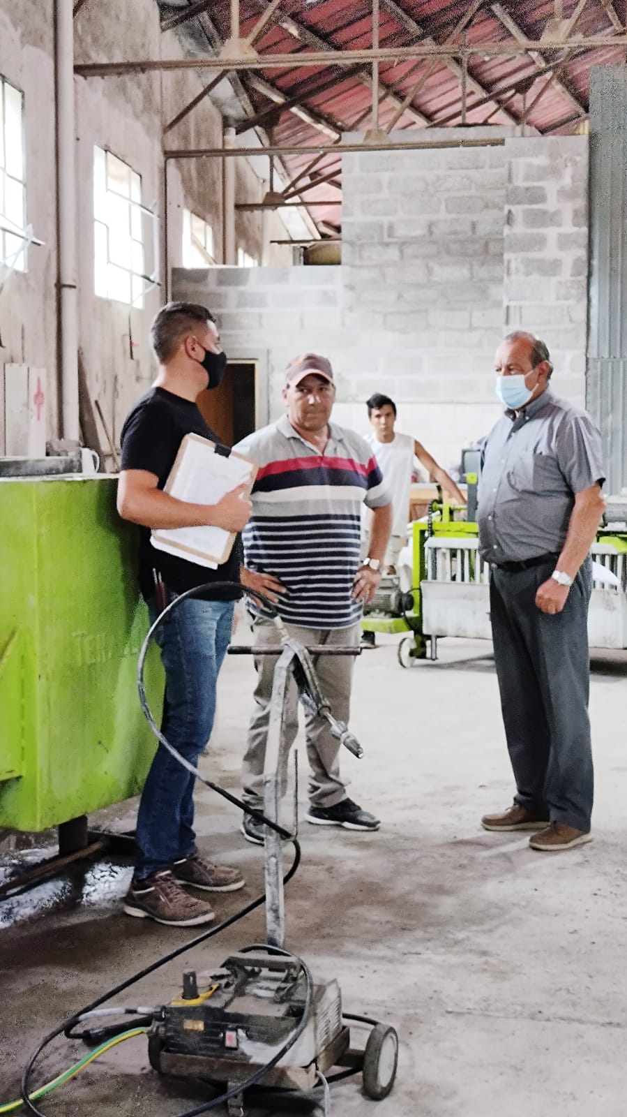 El intendente Carlos Sánchez y la secretaria de Desarrollo Social Claudia Cittadino visitaron la bloquera para el seguimiento de los bloques utilizados en la construcción del SUM del Barrio Ranchos.