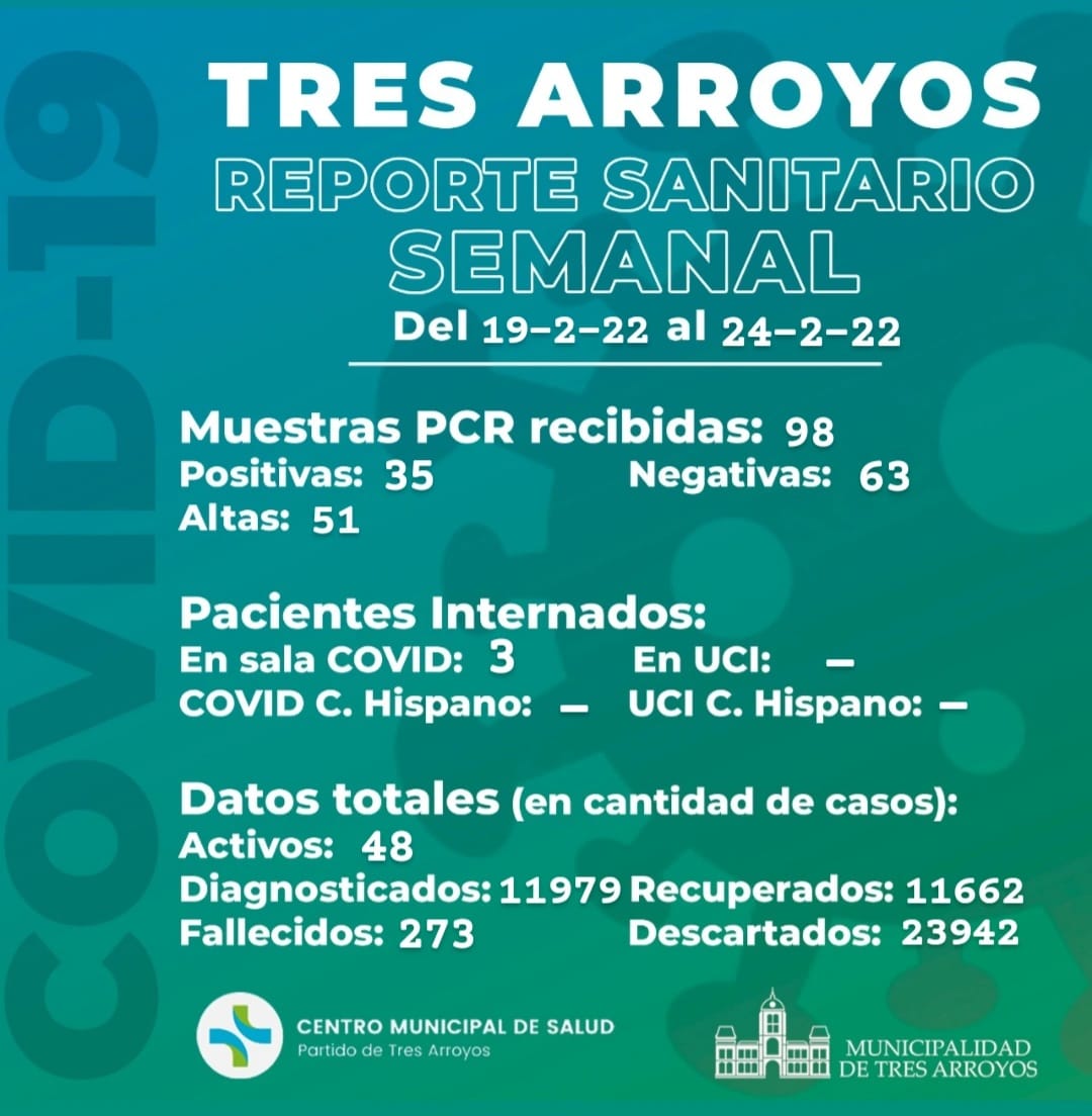 El primer reporte semanal de Covid 19 arrojó tres fallecimientos, 35 positivos, 61 negativos y 51 pacientes dados de alta.