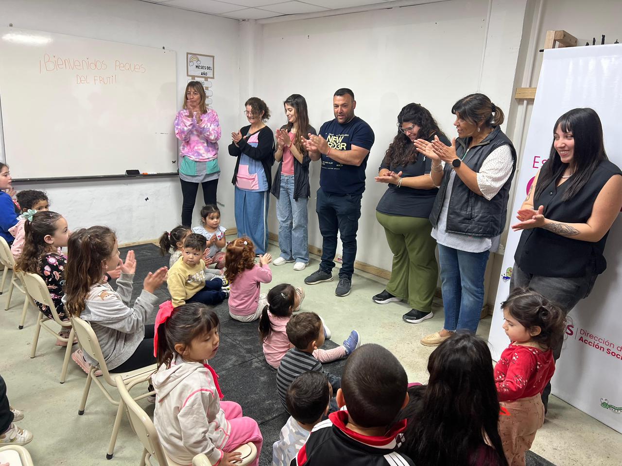 Este jueves por la mañana, los chicos del Jardín Frutillitas I, junto a su directora Karina Molina, docentes y auxiliares, realizaron una visita a la Dirección de Acción Social y al Espacio Crear.