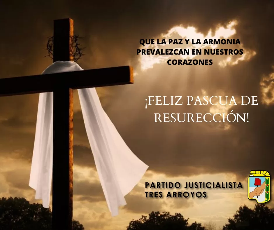 En estas fechas de Pascua de Resurrección, desde el Partido Justicialista de Tres Arroyos, les deseamos que sus corazones estén llenos de amor, paz y esperanza. Que la luz de la resurrección de Jesucristo ilumine sus vidas y les brinde la fuerza y la sabiduría para enfrentar cualquier desafío que se les presente.