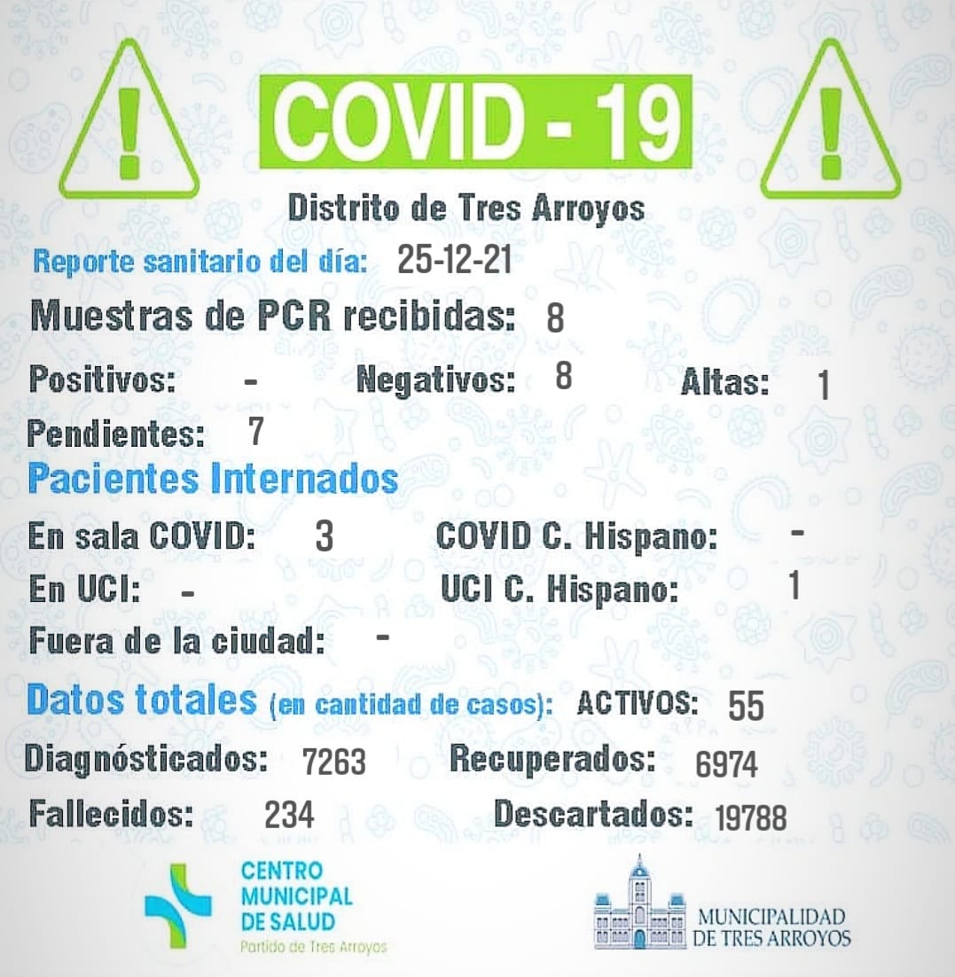 En tanto, los decesos continúan siendo 234, se registran 7 estudios pendientes y se produjo un alta médica.