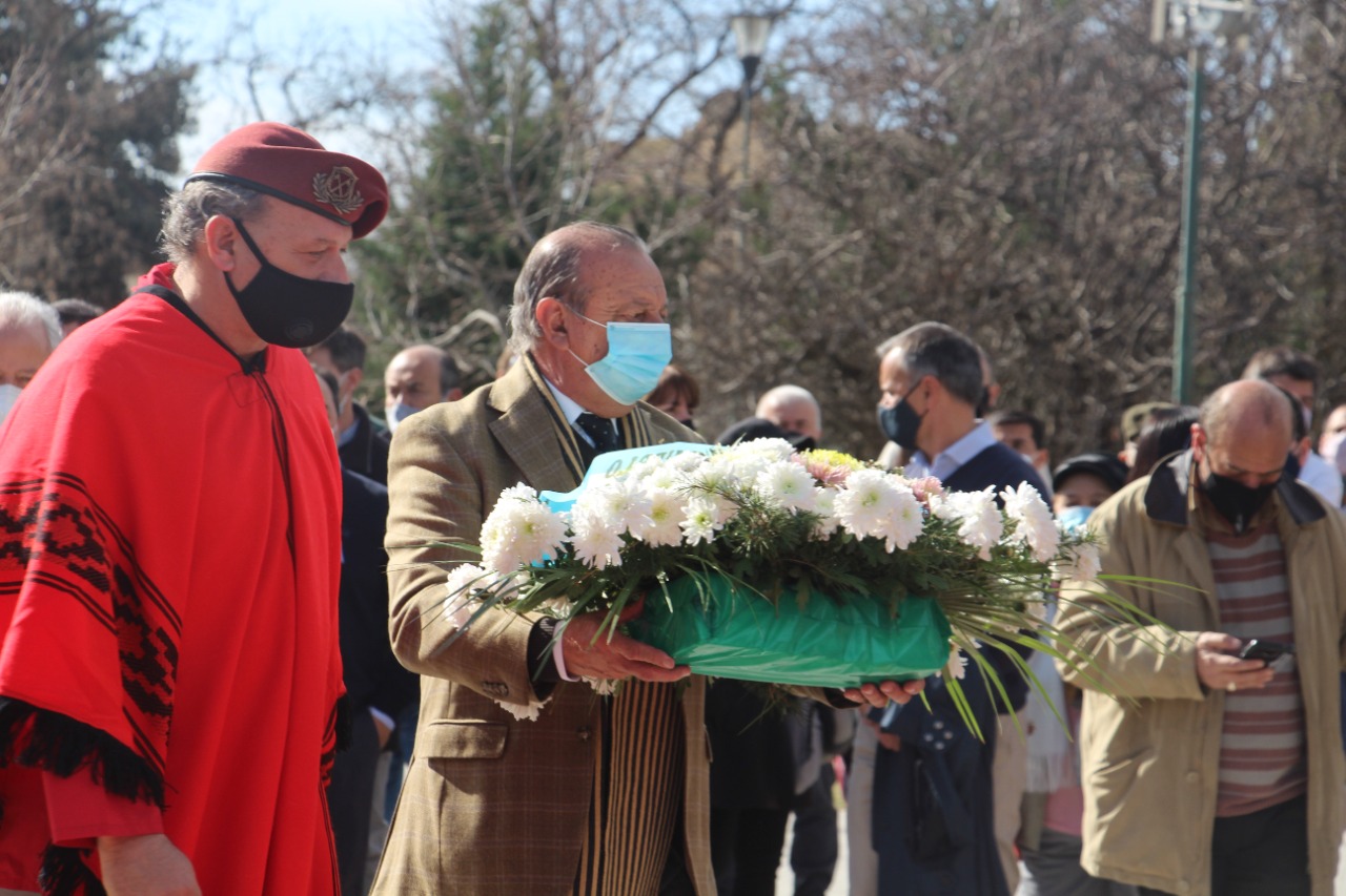 Posteriormente, se colocaron ofrendas florales al pie del monumento y el presidente de la entidad Eugenio Galilea dedicó unas palabras al Libertador.
