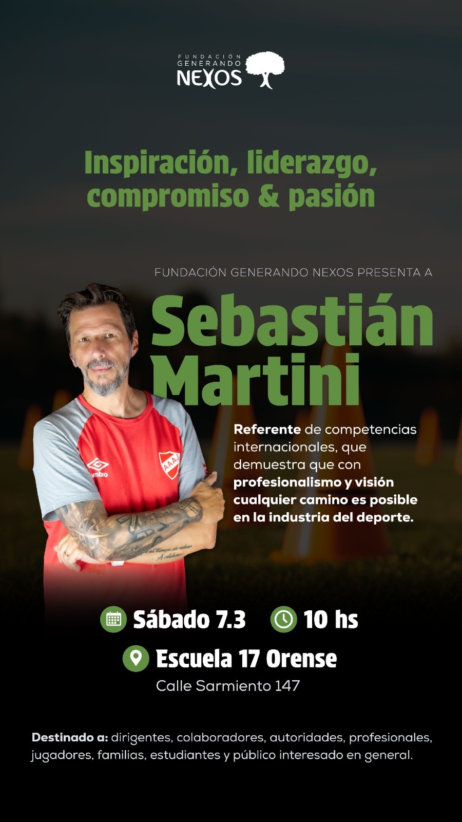 La Fundación Generando Nexos organiza una capacitación gratuita con Sebastián Martini, enfocada en el fútbol más allá de la cancha y las oportunidades que rodean al deporte profesional.