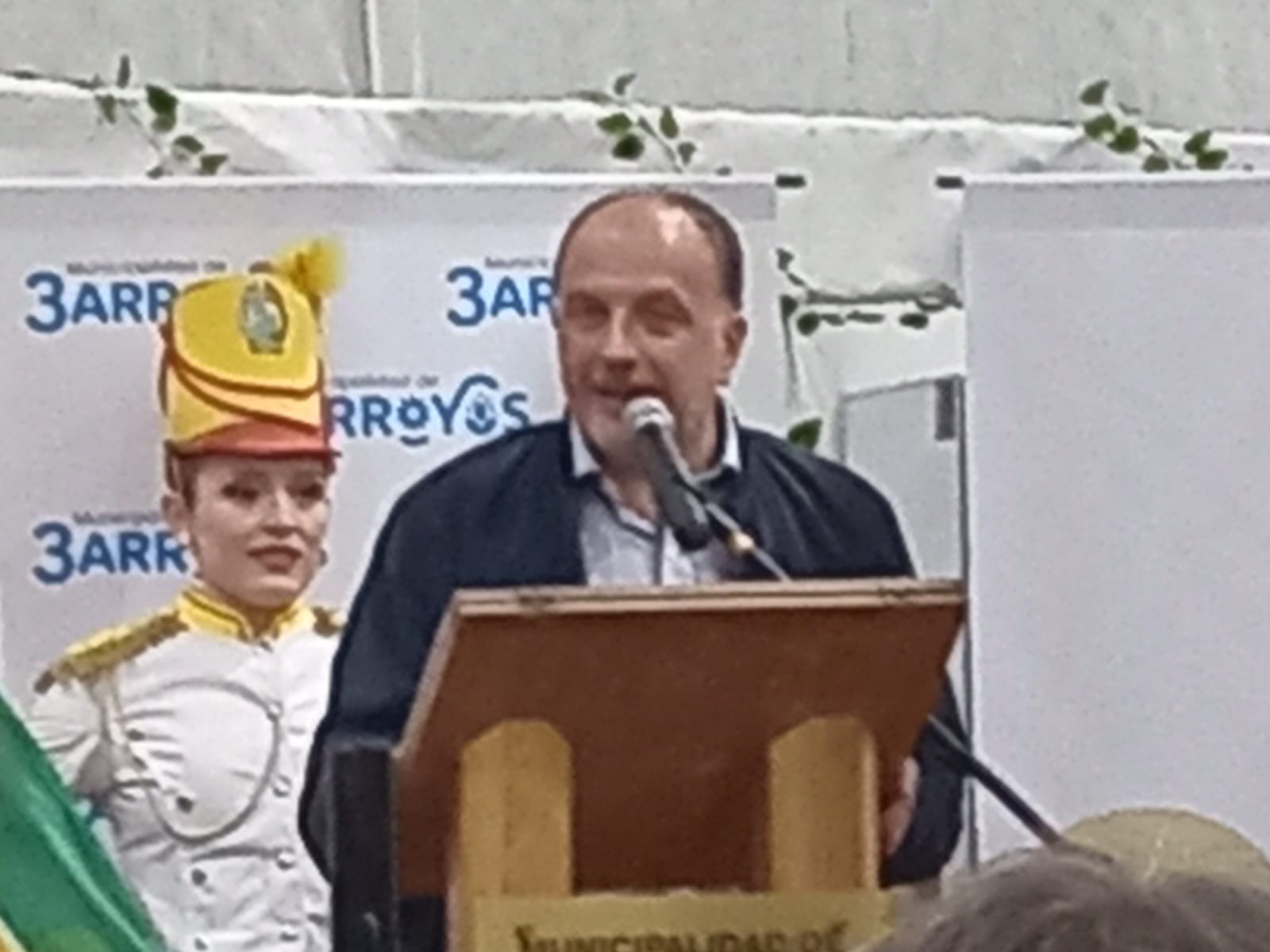 Esta tarde, y bajo una persistente lluvia que contabilizó casi 40 milímetros, quedó formalmente inaugurada la 56° edición de la Fiesta del Trigo luego de que se trasladara su apertura al SUM de la Escuela Técnica.