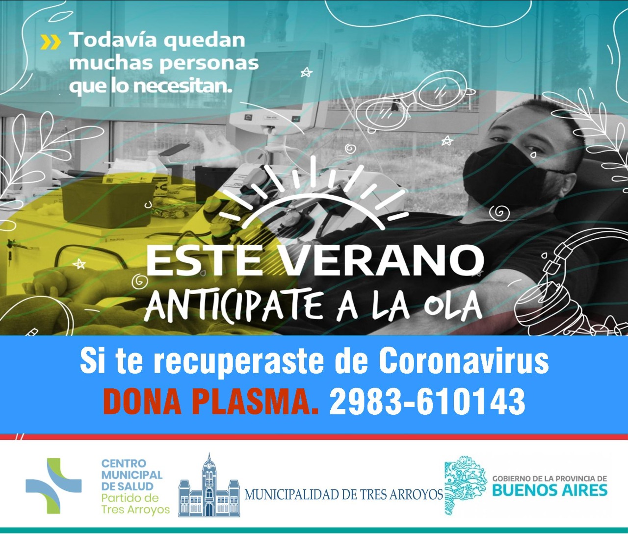 Este componente de la sangre que solo se obtiene de pacientes recuperados y es utilizado como método terapéutico través del convenio al cual adhiere Tres Arroyos y mediante el cual ya se realizaron más de 150 transfusiones a pacientes internados en el distrito.