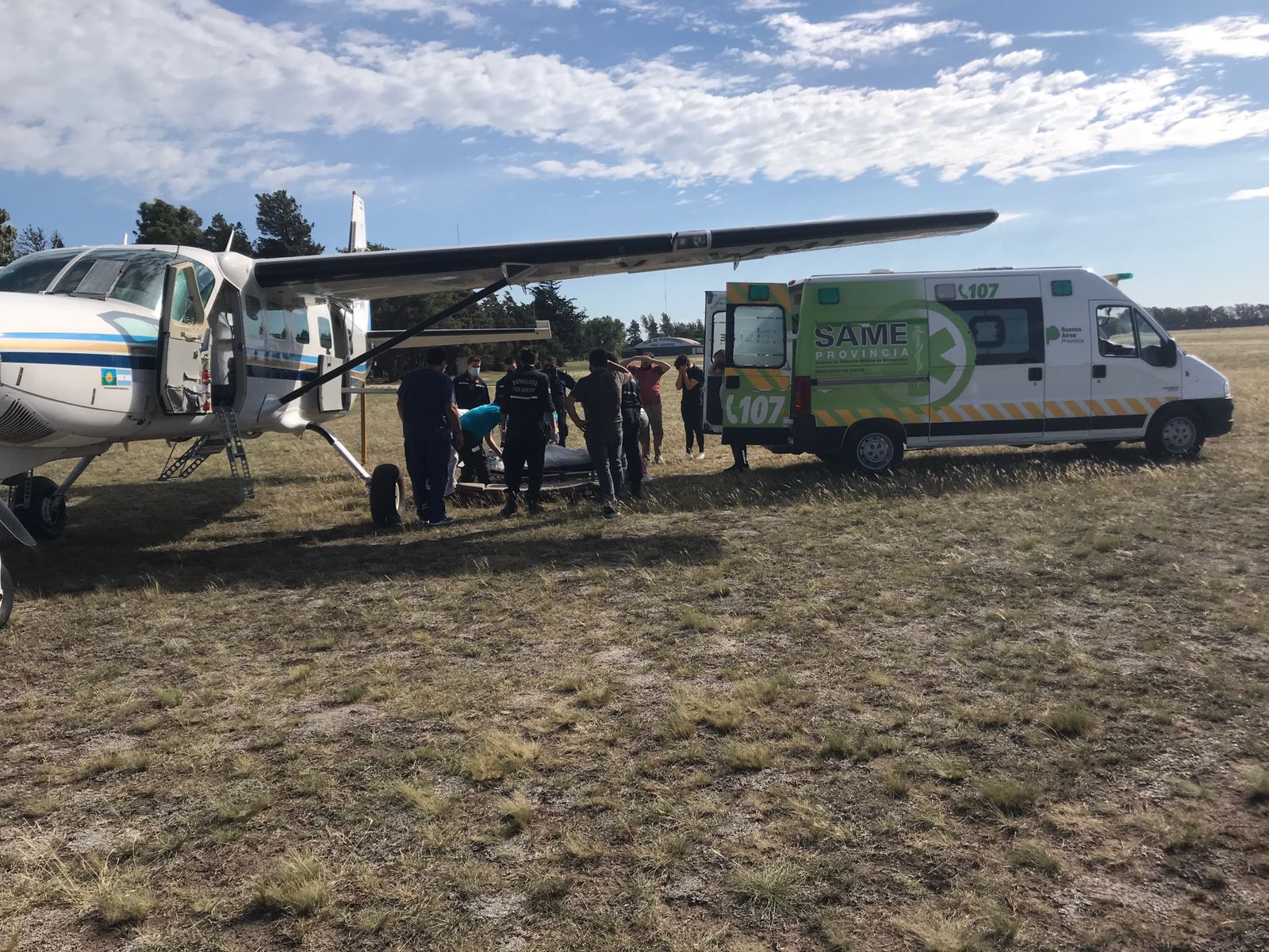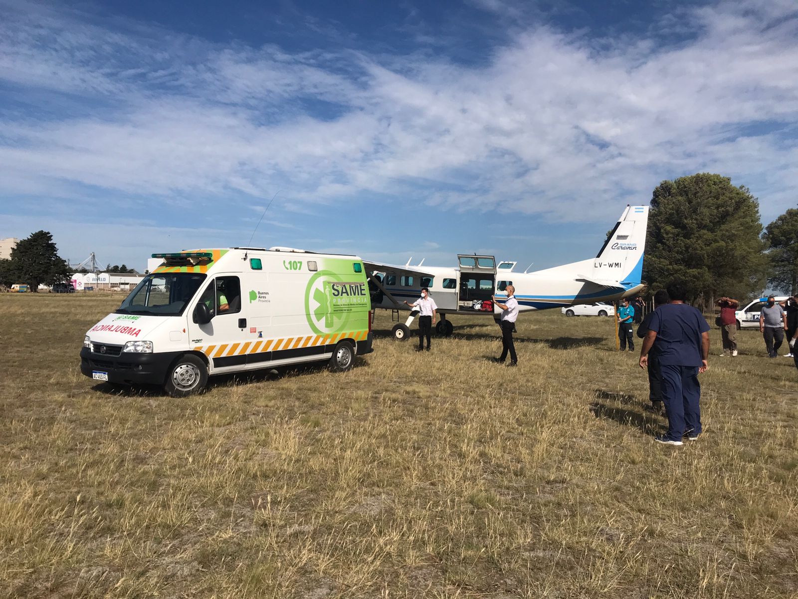 Autoridades del área de salud de la ciudad informaron que una de las ocupantes del auto que protagonizó el accidente ocurrido esta mañana en la Ruta 73, requirió el traslado en avión sanitario al Hospital de Alta Complejidad El Cruce, ubicado en Florencio Varela, por la gravedad de sus heridas.