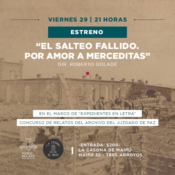 El viernes 29 a las 21 horas se estrenará la obra de teatro “El Salteo Fallido. Por amor a Merceditas” en el marco del lanzamiento de la segunda edición del concurso literario Expedientes en Letra, proyecto ideado y desarrollado por el Museo Mulazzi.