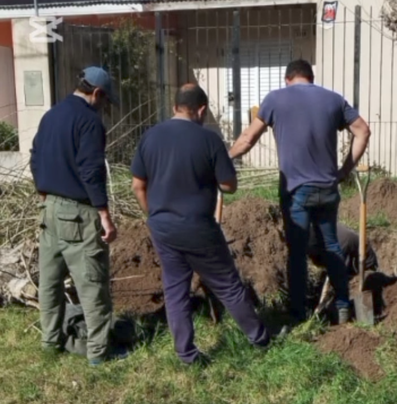 Previamente, dos móviles de Bomberos Voluntarios acudieron tras el aviso de extracción de una planta que produjo la rotura de un caño de gas de la red de suministro gasífero.