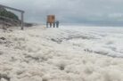 Desde la Delegación de Orense nos enviaron imágenes donde se puede comprobar la gran crecida del mar y el fenómeno de la espuma que cubren casi la totalidad de la playa
