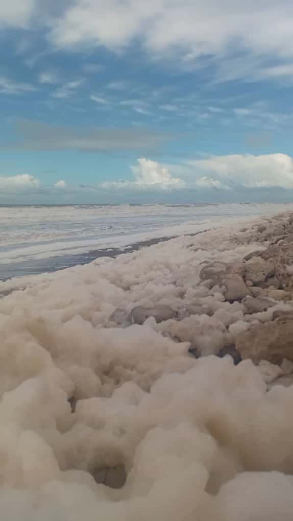 Desde la Delegación de Orense nos enviaron imágenes donde se puede comprobar la gran crecida del mar y el fenómeno de la espuma que cubren casi la totalidad de la playa