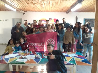 Integrantes de Rotaract Club Tres Arroyos Libertad y los peluqueros Manuel Luna, Gustavo Jensen y Fabiola Acuña, realizamos el pasado domingo una jornada solidaria con los niños que asisten al Programa Puentes en la Infancia.