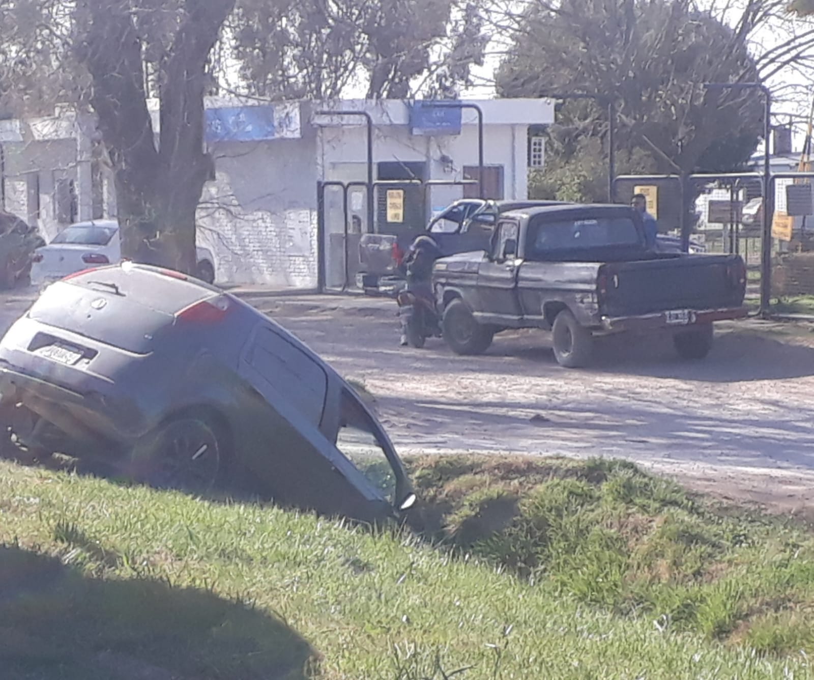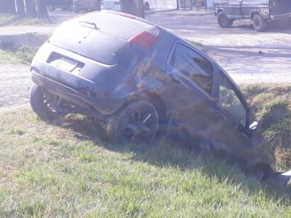 Un vehículo terminó esta mañana en una zanja tras una mala maniobra, aparentemente a alta velocidad, en ruta 3 y Larrea.