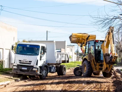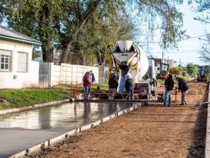 El plan previsto para el Barrio ATEPAM sigue avanzando, y en este marco, se están llevando a cabo trabajos de pavimentación sobre la calle Passo, a la altura de la Escuela 4.