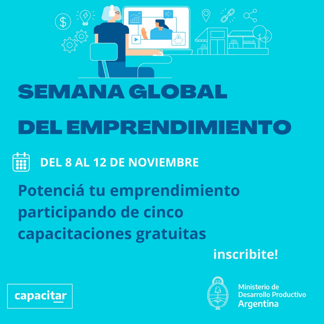 En el marco de la Semana Global del Emprendimiento, la Secretaría de Desarrollo Económico, Ciencia y Tecnología de Tres Arroyos invita a todos los emprendedores a sumarse durante esta semana a diversas charlas y capacitaciones que se estarán brindando en la Plataforma Capacitar. Es una iniciativa del Ministerio de Desarrollo Productivo de la Nación.