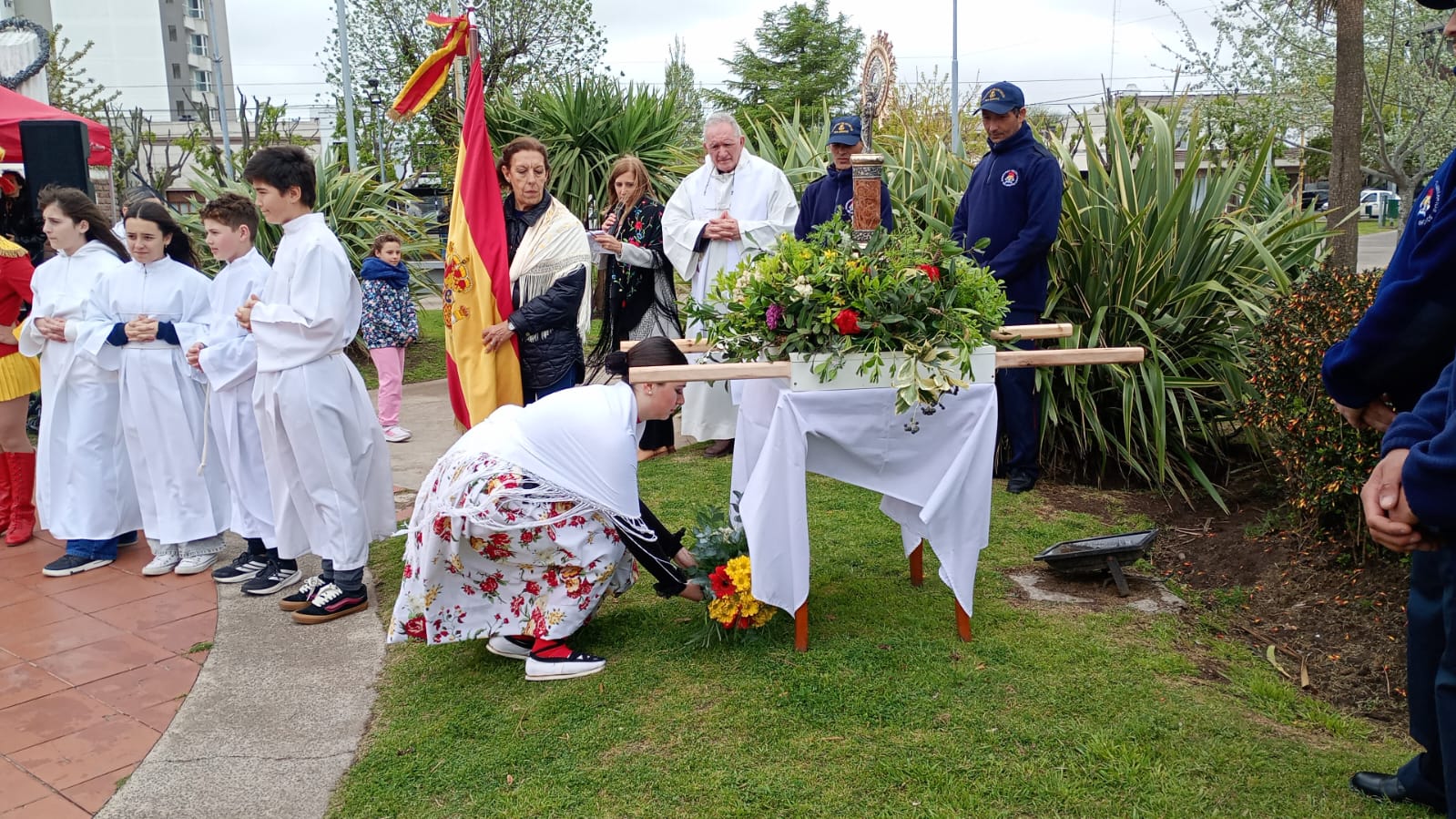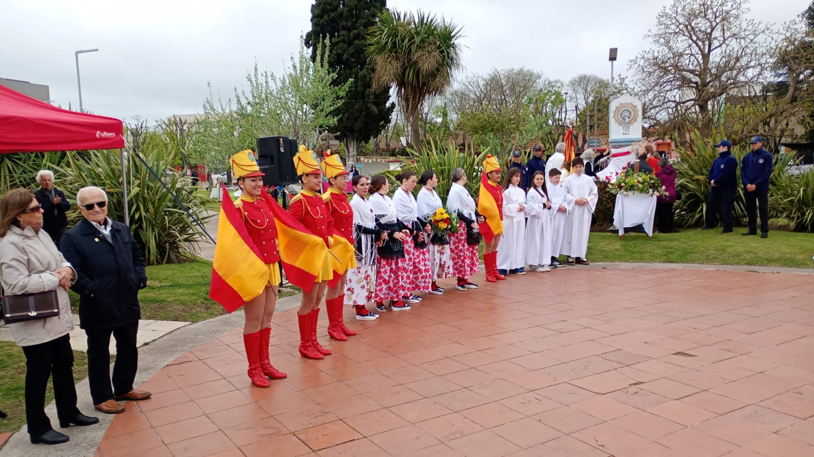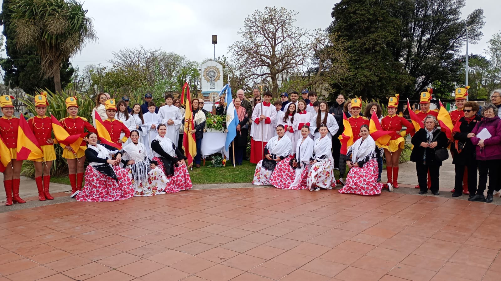 Durante la mañana se realizó la Santa Misa en la Capilla del Colegio Jesús Adolescente, seguida por la procesión y el acto en Plaza España, donde la Virgen recibió su manto y ofrendas florales. El público también disfrutó de una danza española típica, muy aplaudida.
