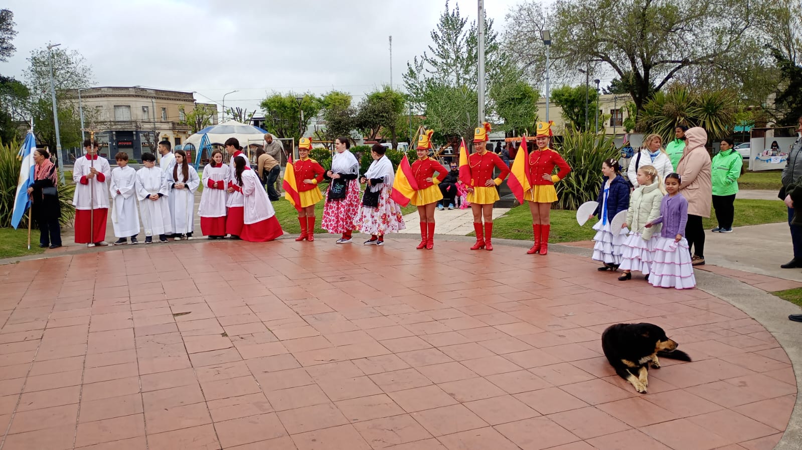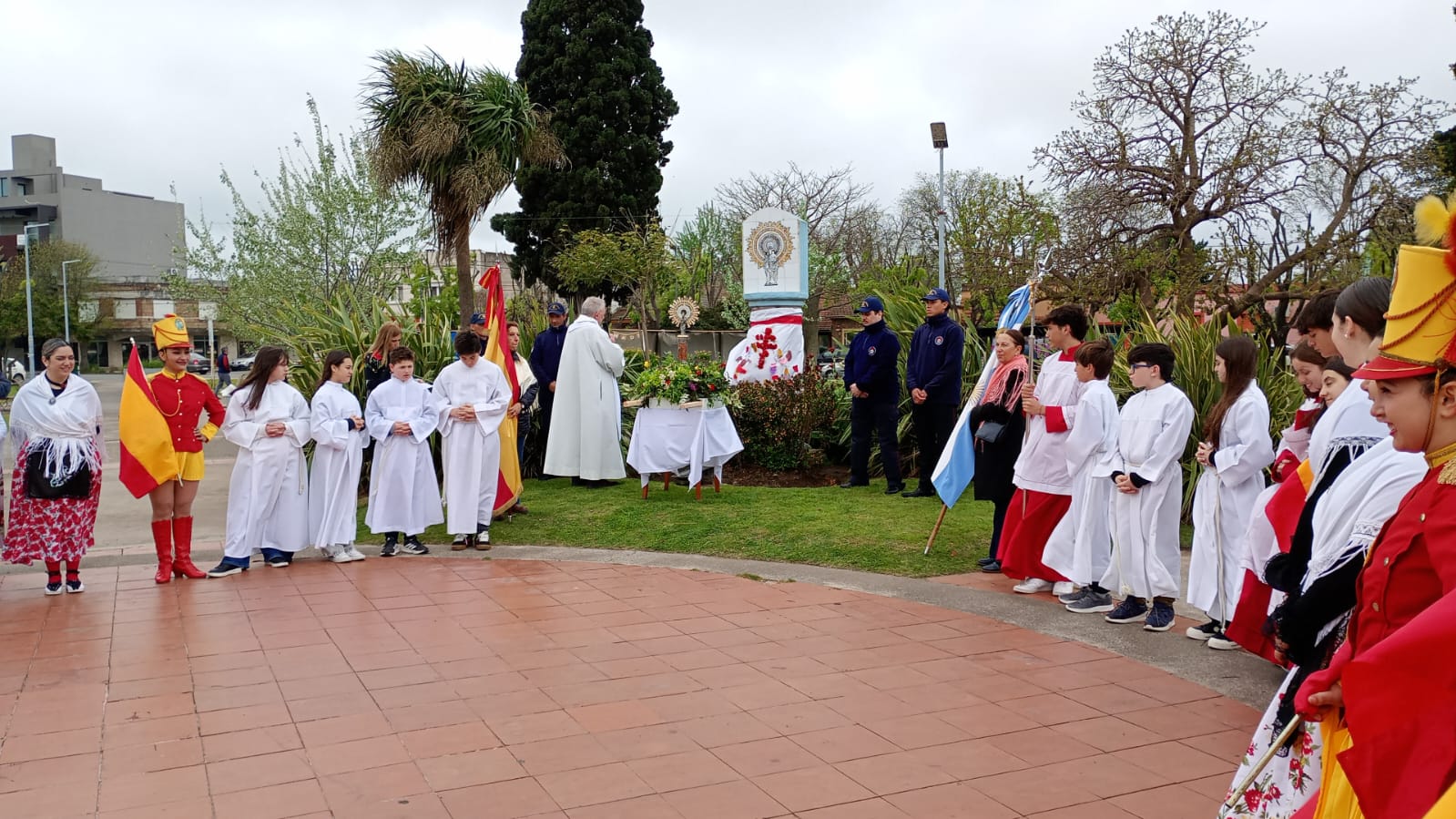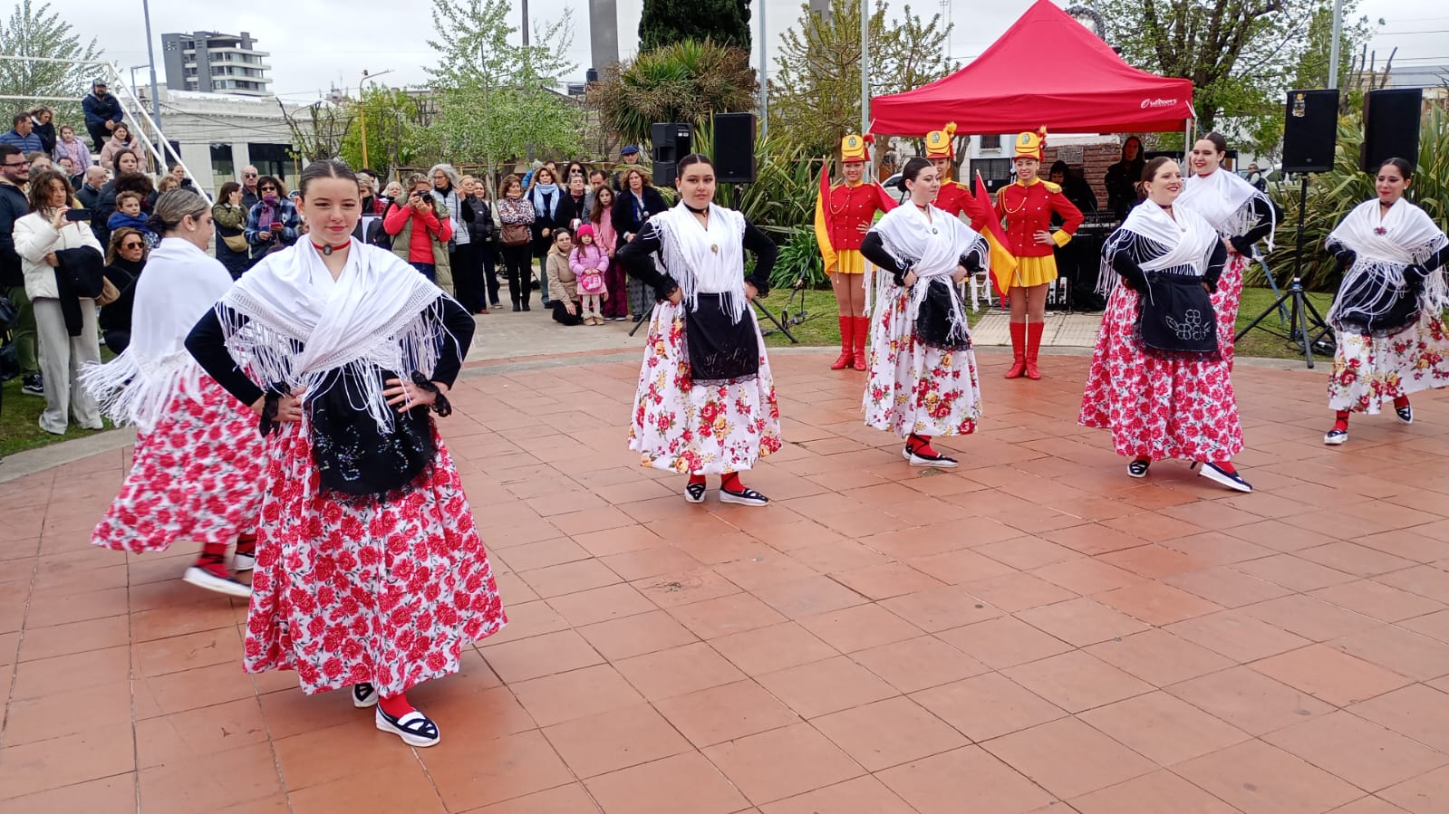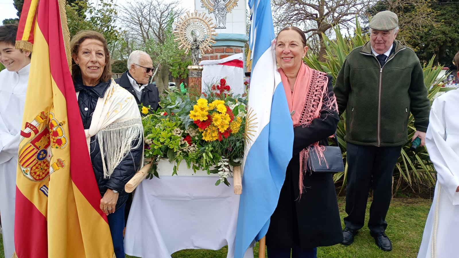 Durante la mañana se realizó la Santa Misa en la Capilla del Colegio Jesús Adolescente, seguida por la procesión y el acto en Plaza España, donde la Virgen recibió su manto y ofrendas florales. El público también disfrutó de una danza española típica, muy aplaudida.