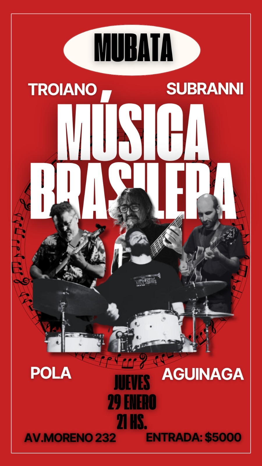 La formación contará con la participación del tresarroyense Juan Manuel Pola, guitarrista especializado en música brasileña, radicado en Buenos Aires y formado con el reconocido maestro Tirso Lucena, referente de la guitarra brasileña en Argentina durante las décadas del 60 y 70. La banda se completa con Juan Subranni en bajo eléctrico y Manuel Aguinaga en batería y percusión.